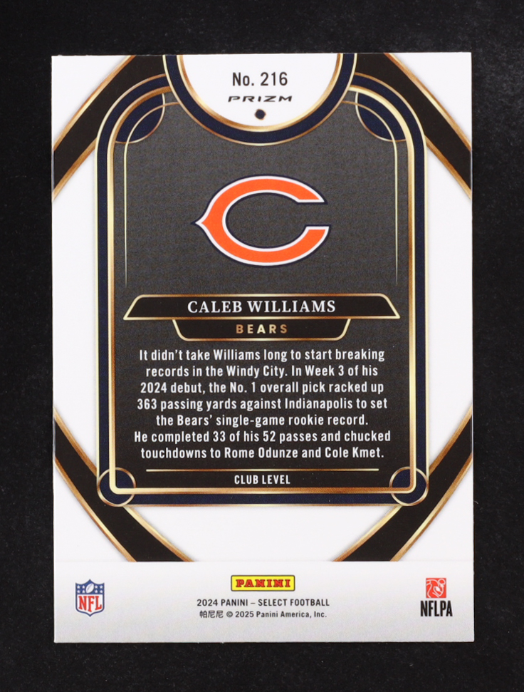 Caleb Williams 2024 Select Prizm Red and Blue Shock #216 RC