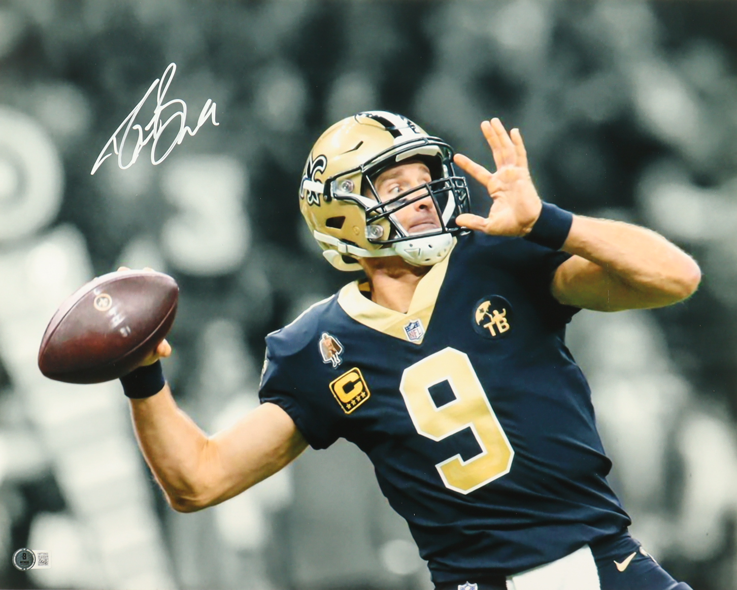 The photo measures 16" x 20" in size and has been hand-signed by Drew Brees (New Orleans Saints).