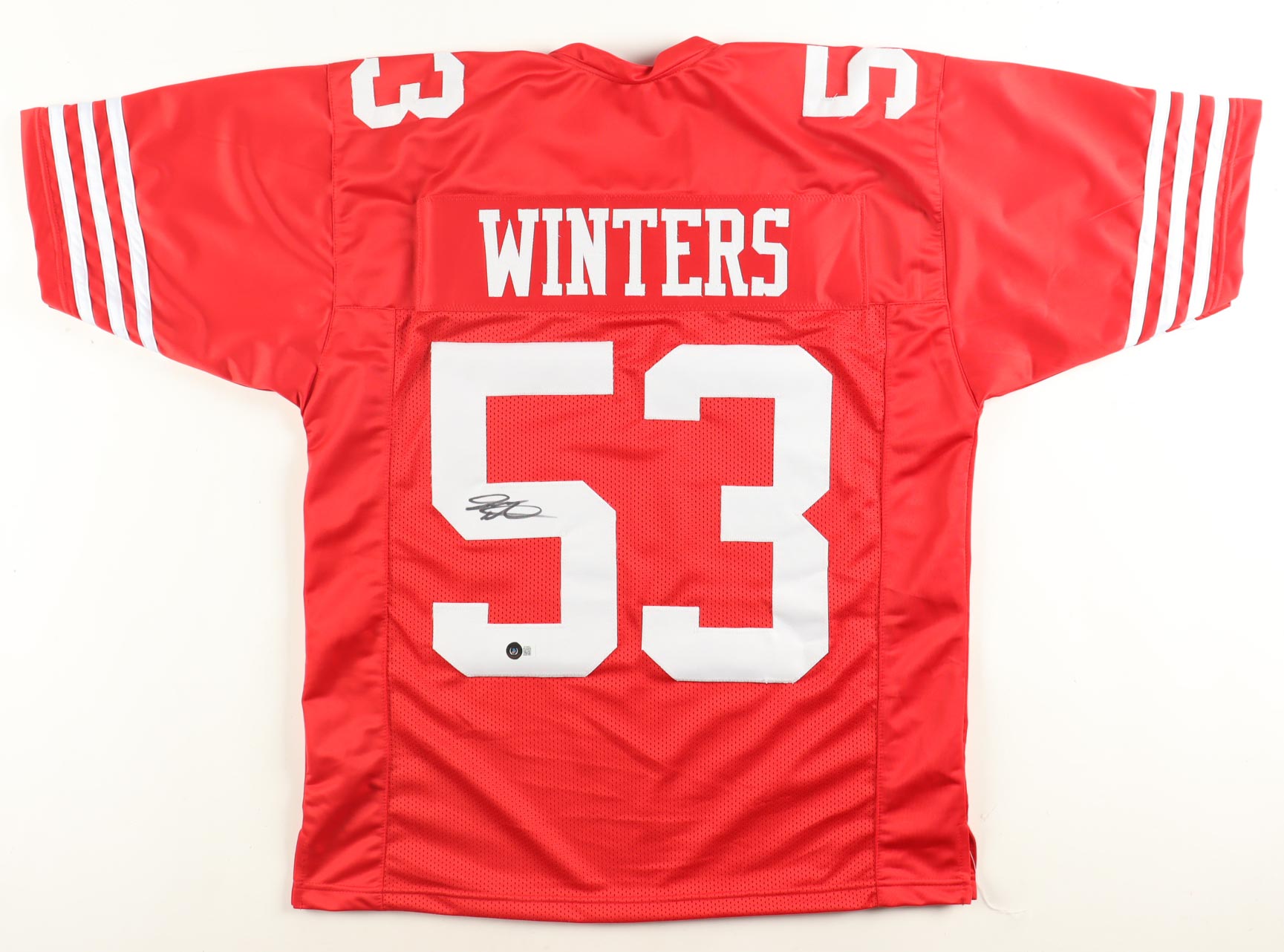 Custom jersey with everything sewn on, size XL. Hand-signed by Dee Winters.