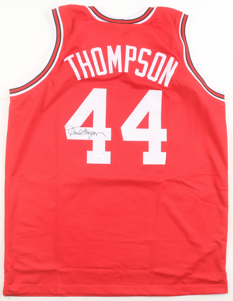 Custom jersey with everything sewn on, size XL. Hand-signed by David Thompson (HOF).