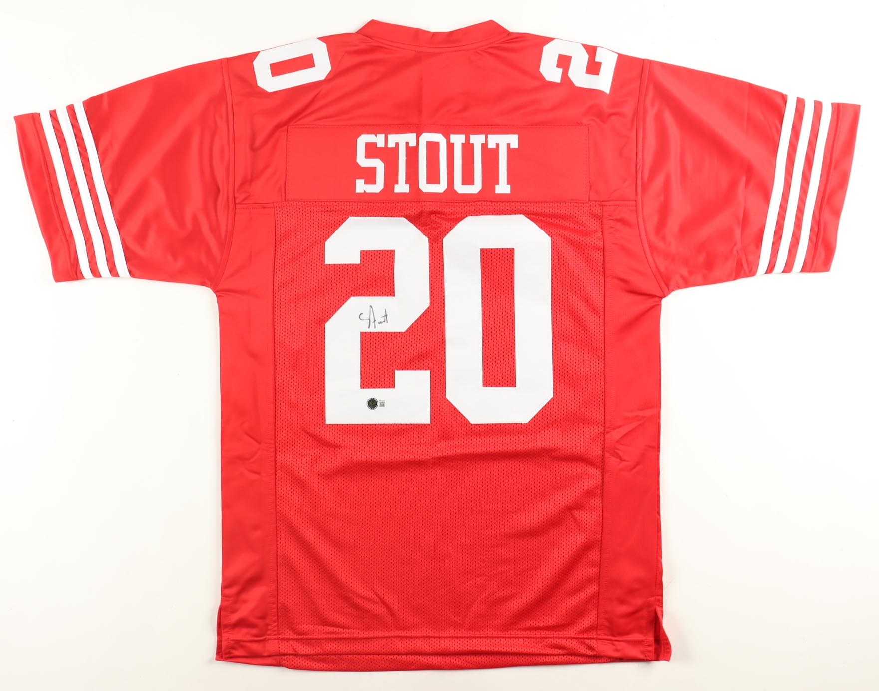 Custom jersey with everything sewn on, size XL. Hand-signed by Upton Stout.