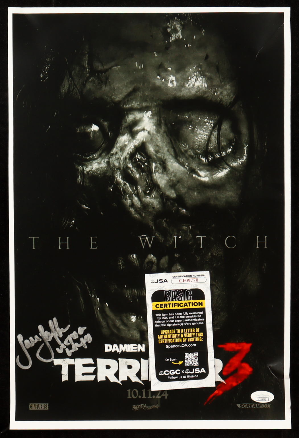 Samantha Scaffidi Signed "Terrifier 3" 12x18 Photo Inscribed "Victoria Heyes" (JSA)