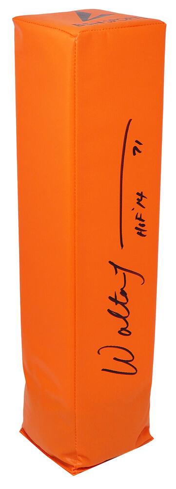 Football end zone pylon has been hand-signed and inscribed by Walter Jones (Seattle Seahawks, HOF).