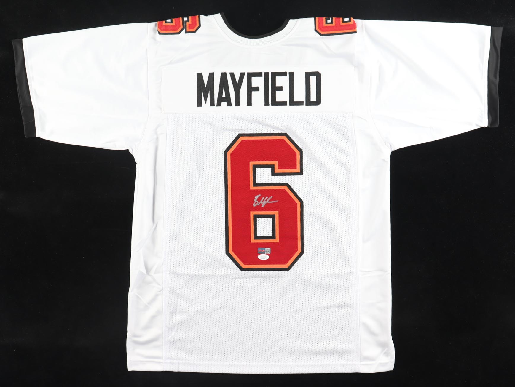 Custom jersey. Everything sewn on, size XL. Hand-signed by Baker Mayfield.