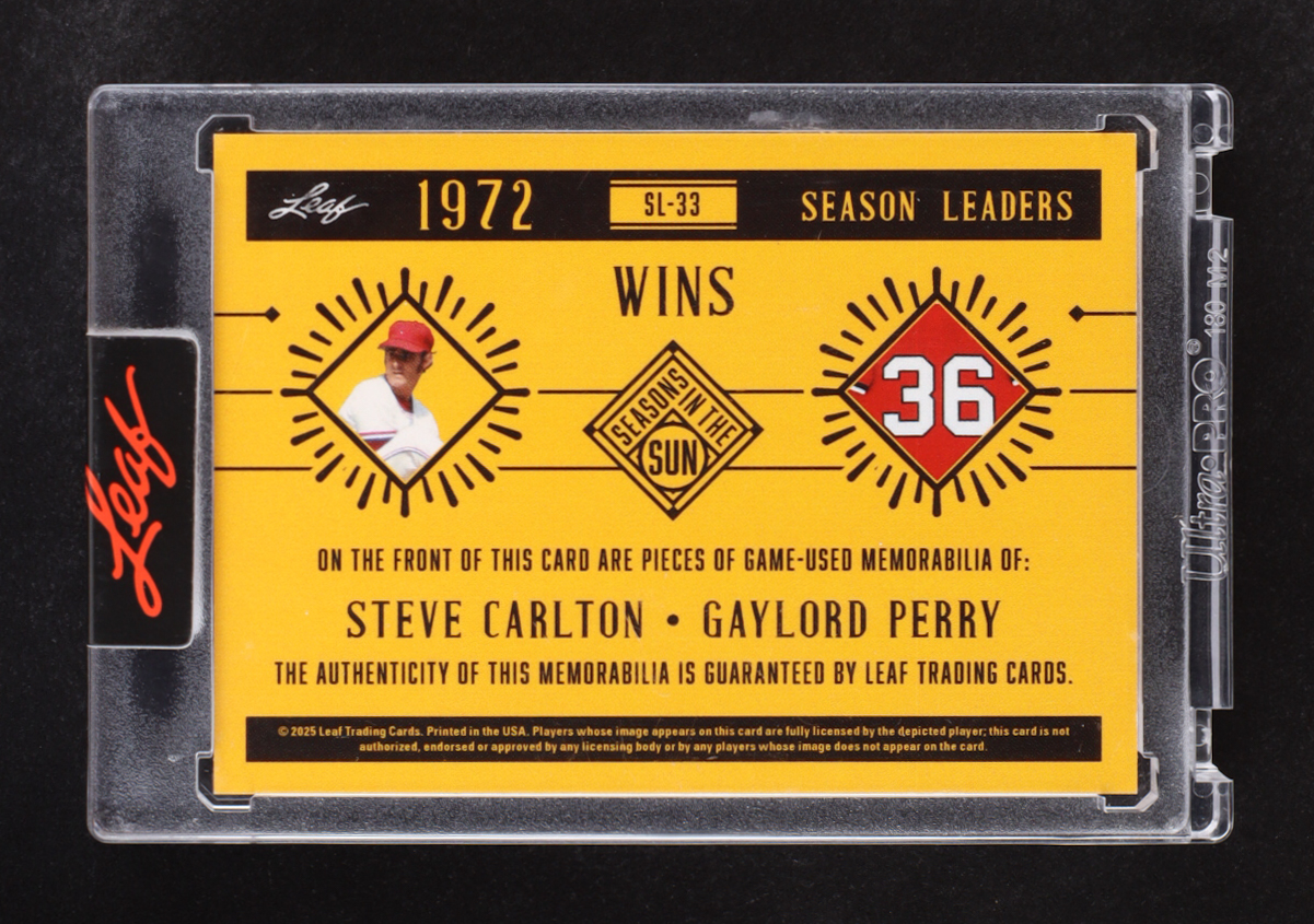Steve Carlton / Gaylord Perry 2025 Leaf Seasons in the Sun 1972 Season Leaders Wings Green Pulsar #SL33 #1/1