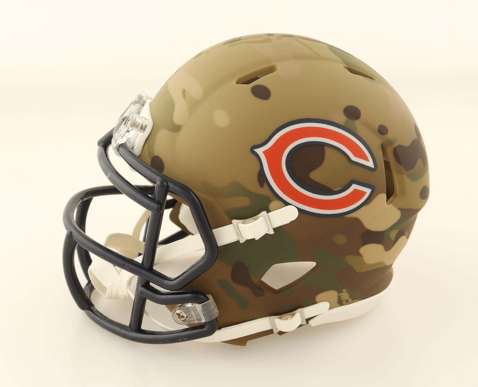 Riddell Chicago Bears Camo Alternate Speed mini helmet. Hand-signed by Devin Hester.
