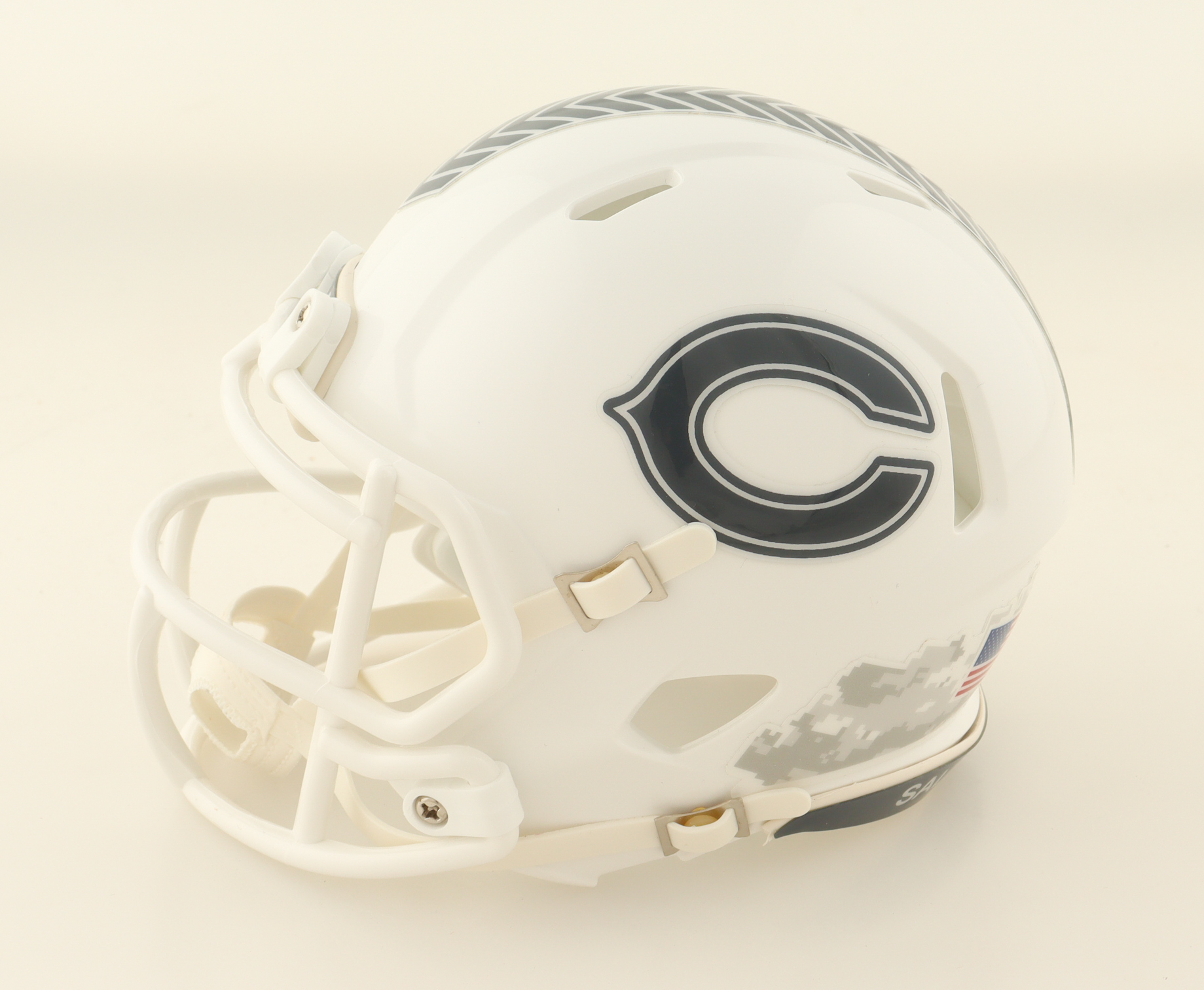 Riddell Chicago Bears Salute To Service Alternate Speed mini helmet. Hand-signed by Jaquan Brisker.