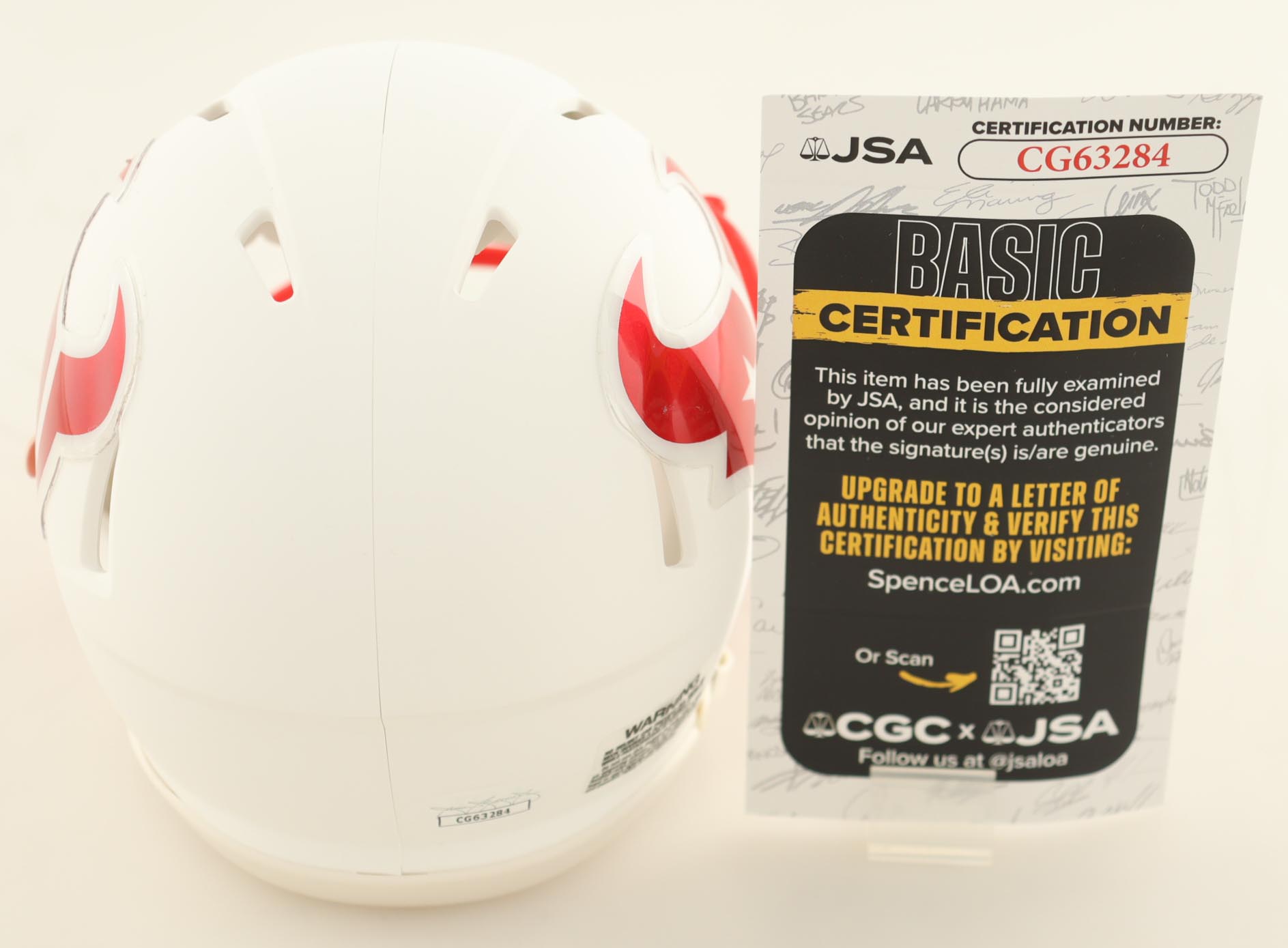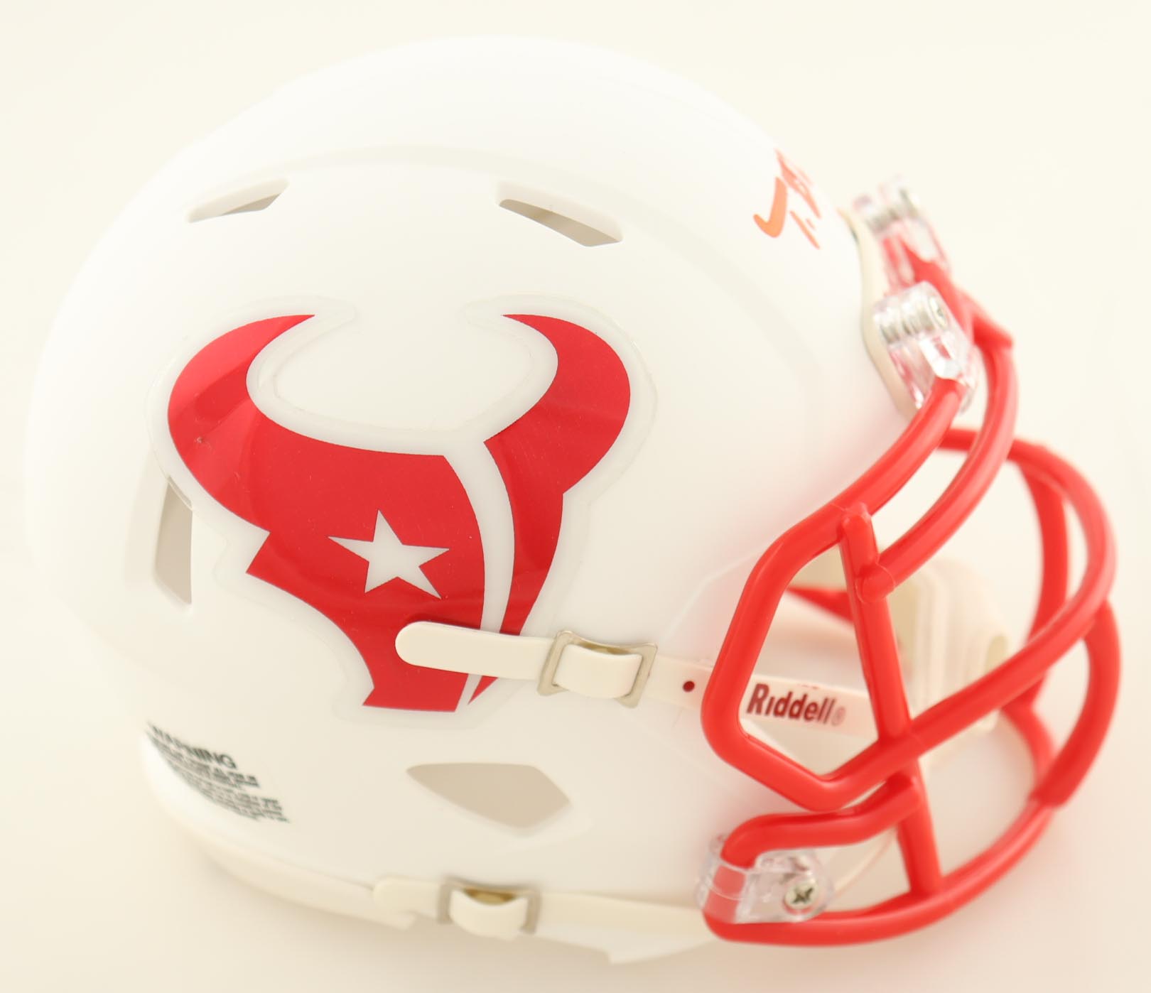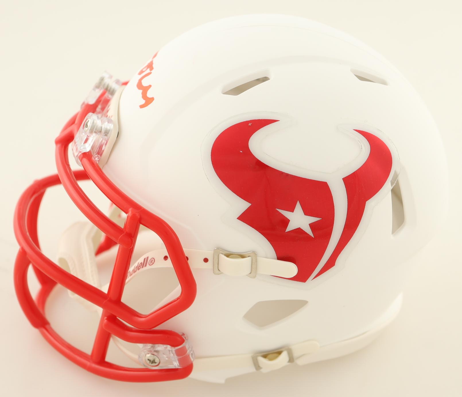 Riddell Houston Texans Flat White Alternate speed mini helmet has been hand-signed by Tank Dell.