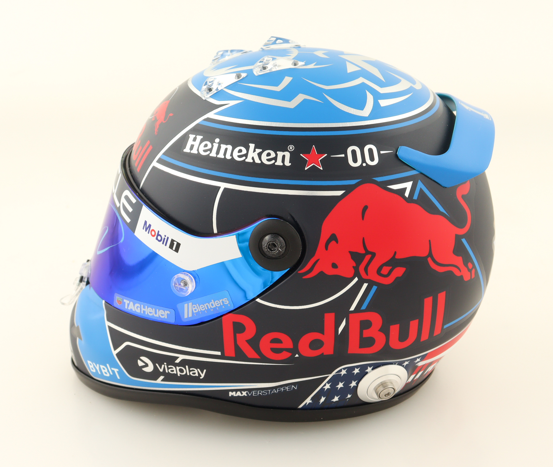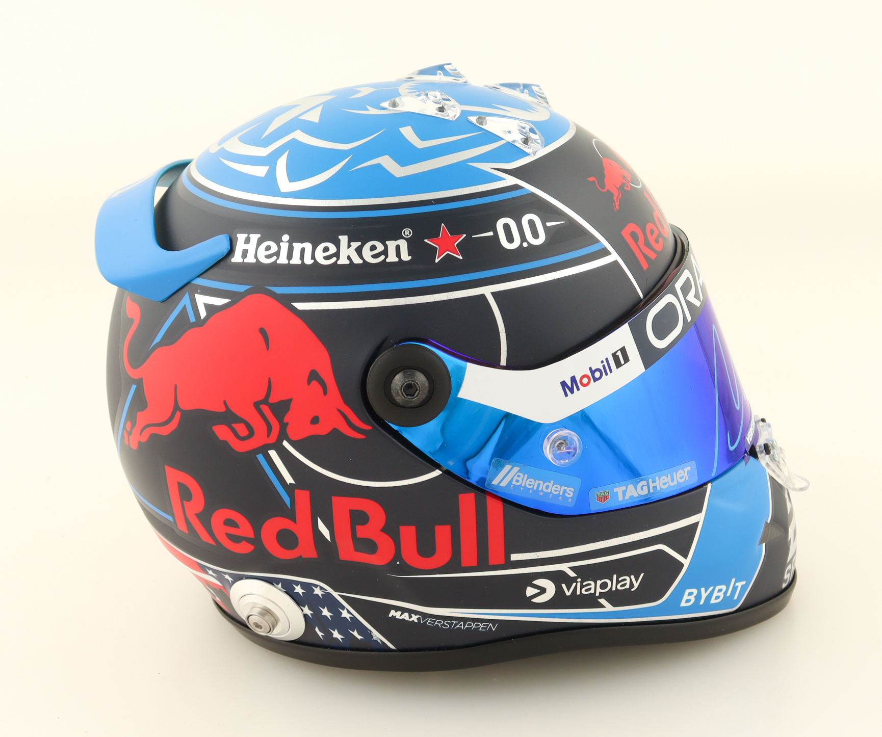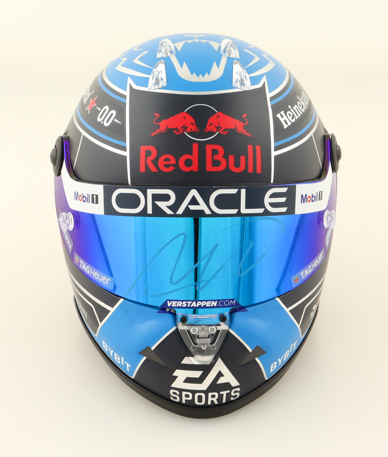 Red Bull Racing Oracle mini racing helmet has been hand-signed on the visor by Max Verstappen. See photos for more details.