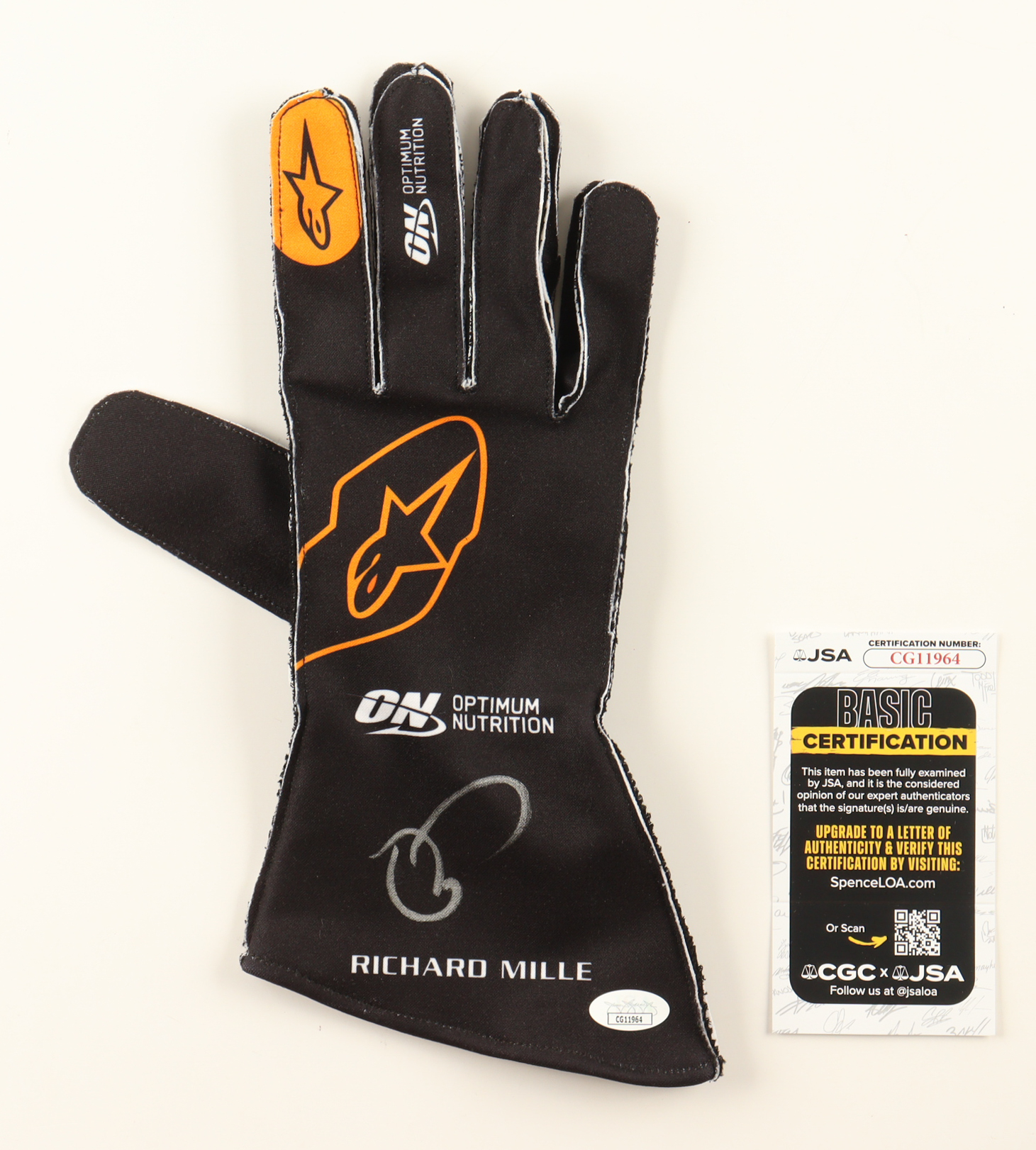 This McLaren race right glove has been hand-signed by Oscar Piastri.