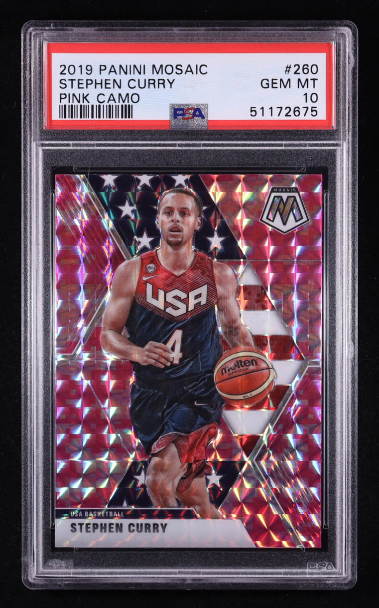 Stephen Curry 2019-20 Panini Mosaic Mosaic Pink Camo #260 (PSA 10)