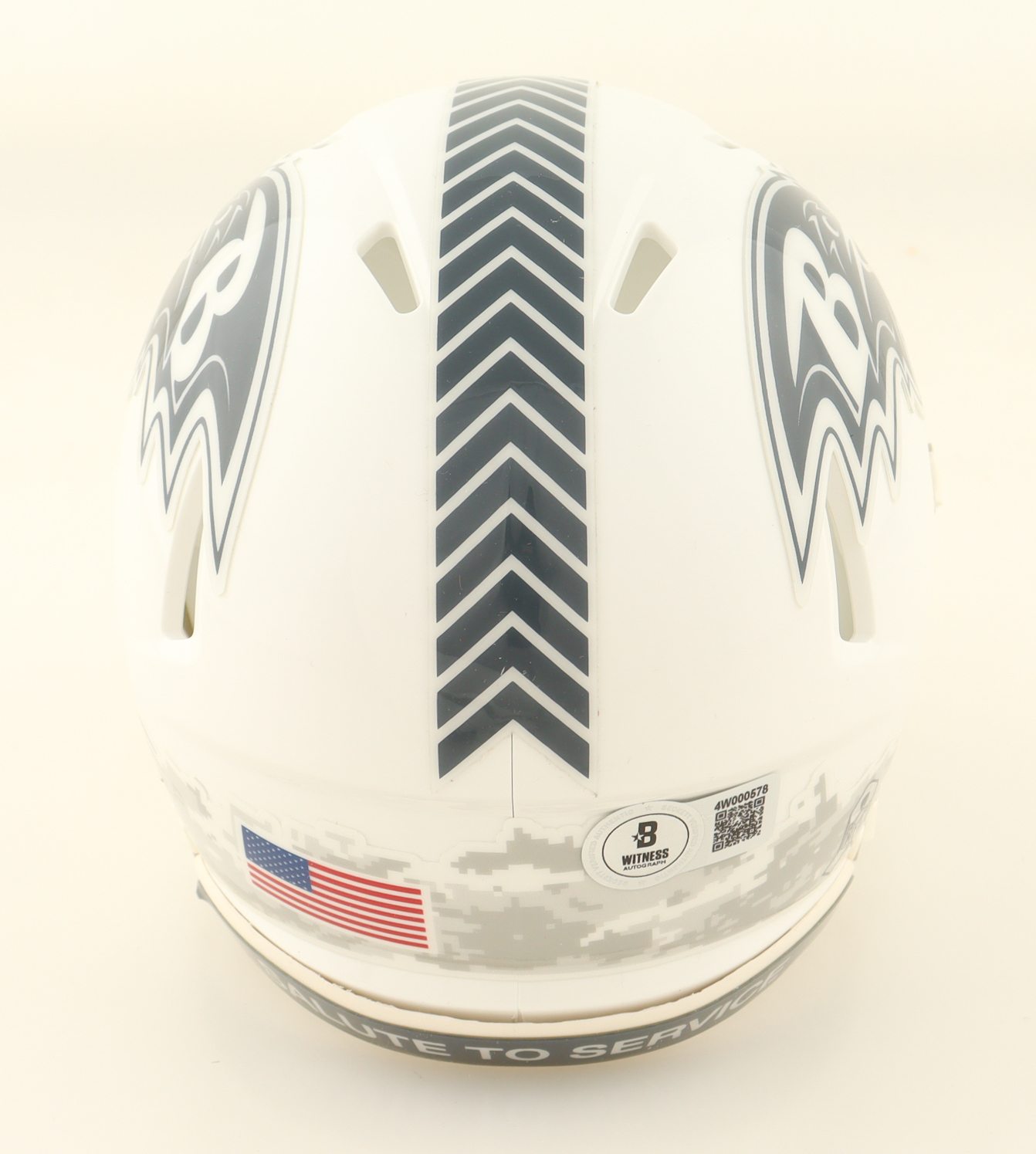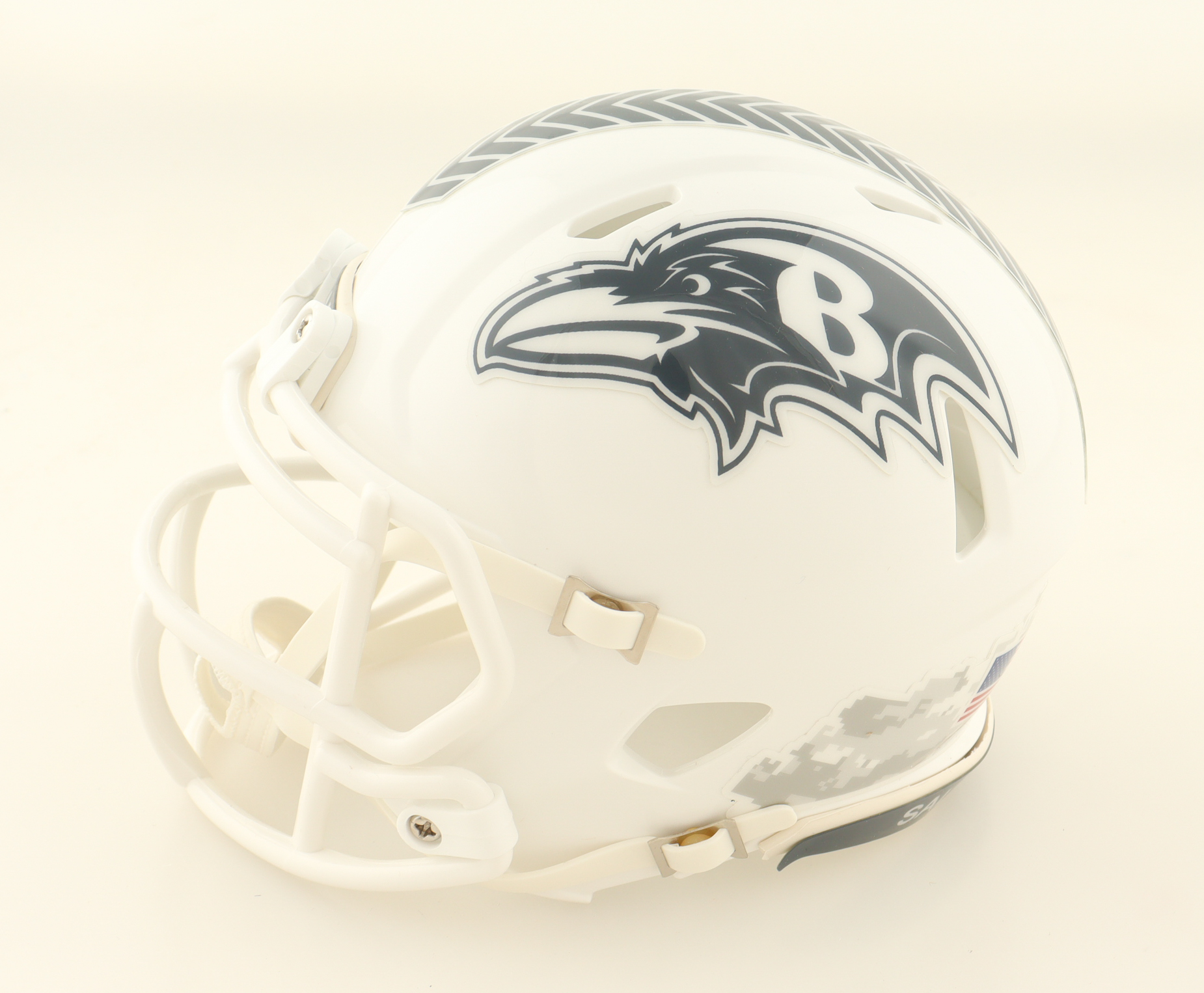 Riddell Baltimore Ravens Salute to Service Alternate Speed mini helmet. Hand-signed by Jonathan Ogden.