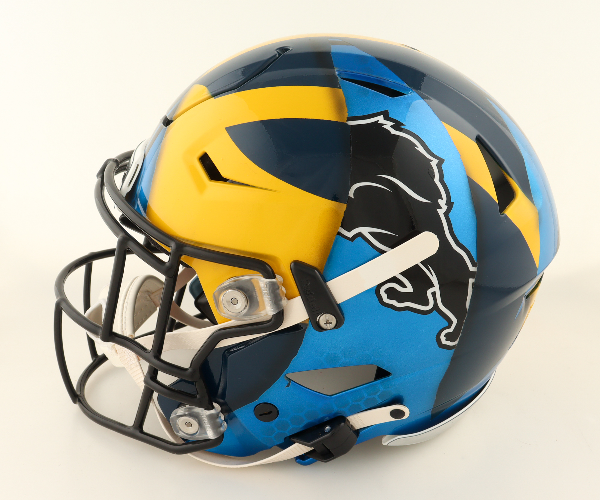 Riddell Detroit Lions / Michigan Wolverines full-size authentic on-field speed flex helmet. Hand-signed by Aidan Hutchinson.