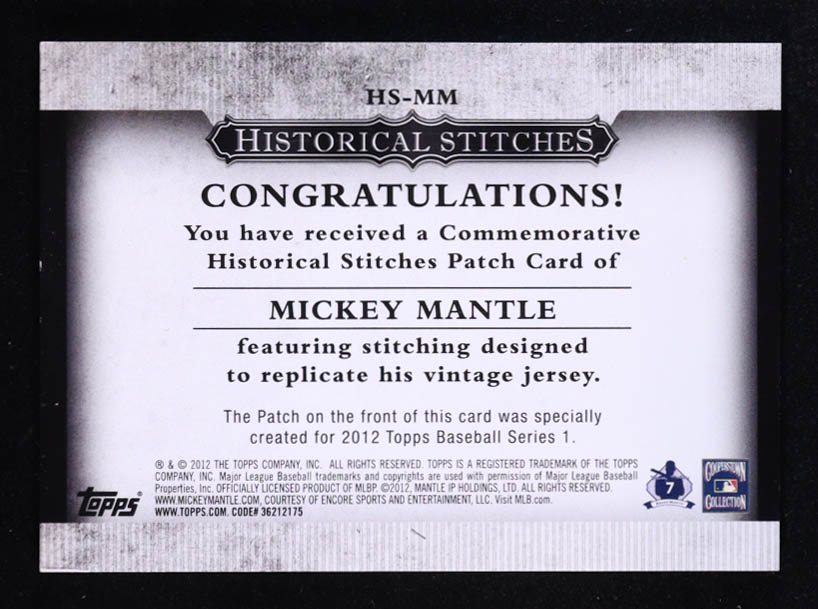 Mickey Mantle 2012 Topps Historical Stitches #MM