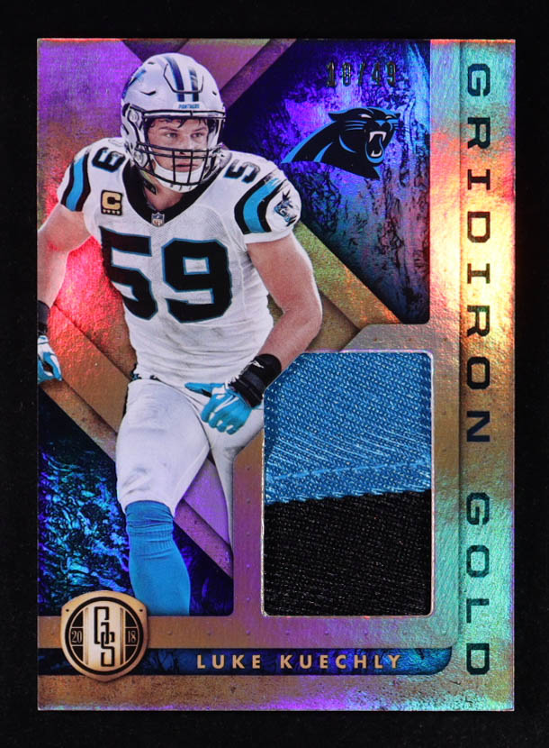 Luke Kuechly 2018 Panini Gold Standard Gridiron Gold Materials Prime #4 #10/49