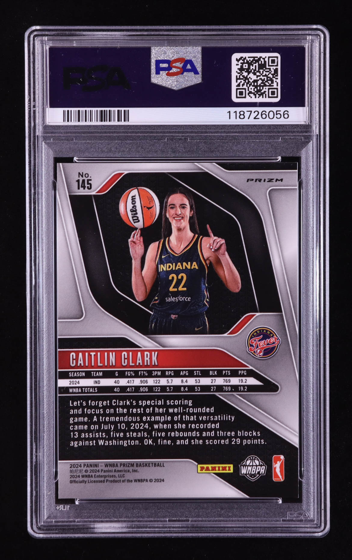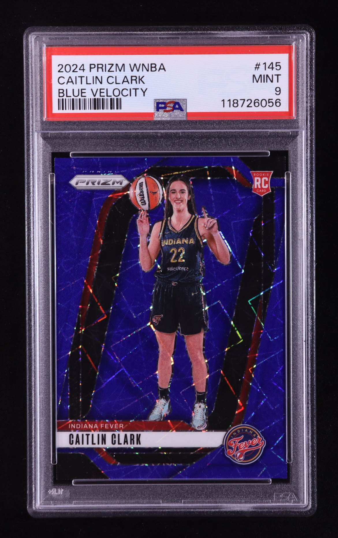 Caitlin Clark 2024 Panini Prizm WNBA Prizms Blue Velocity #145 RC (PSA 9)