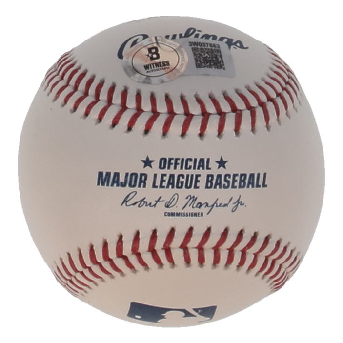 Rawlings Official Major League Baseball. Hand-signed by Jackson Merrill (San Diego Padres). Please note, there are minor stains throughout the baseball.