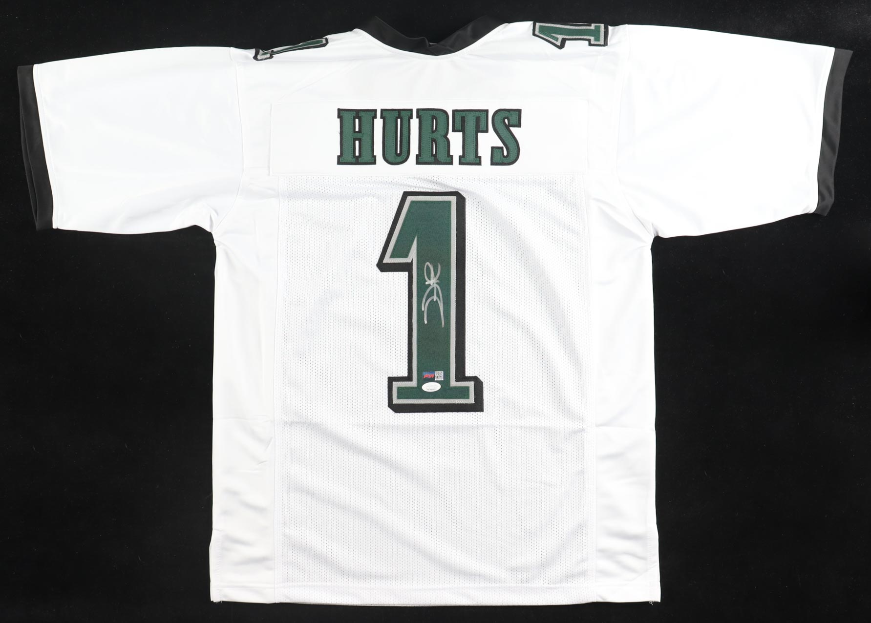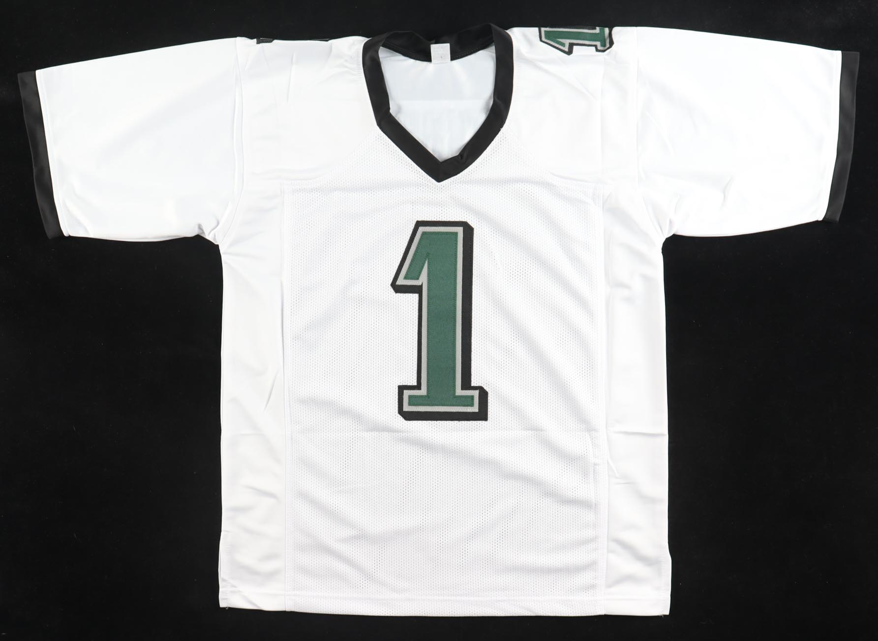 Custom jersey with everything sewn on, size XL. Hand-signed by Jalen Hurts.