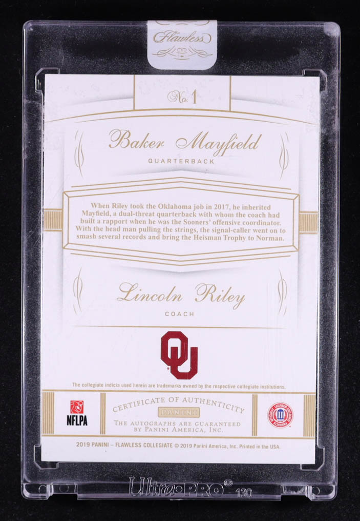 Baker Mayfield / Lincoln Riley 2019 Panini Flawless Collegiate Dual Signatures Emerald #1 #1/5