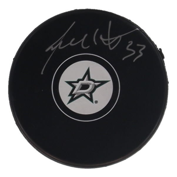 Dallas Stars Logo Hockey Puck. Hand-signed by Benoit Hogue.