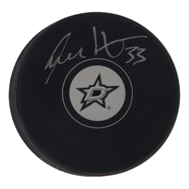 Dallas Stars Logo Hockey Puck. Hand-signed by Benoit Hogue.