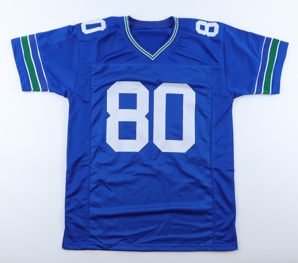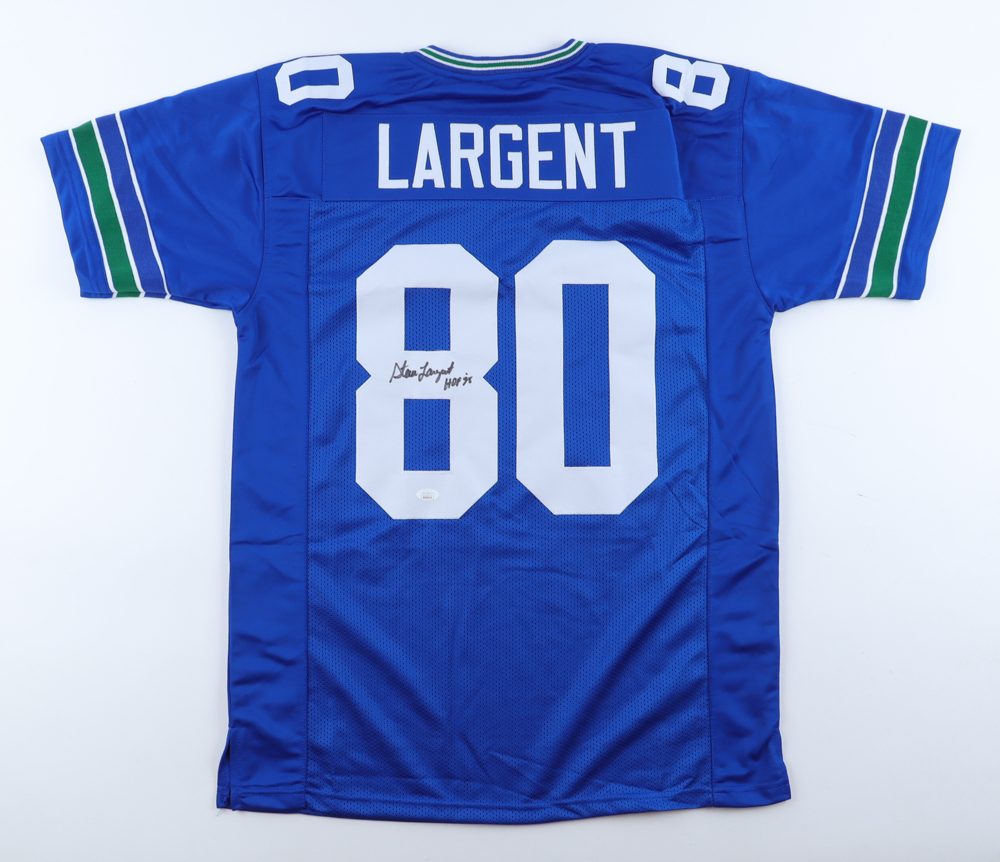 Custom jersey. Everything is sewn on, size XL. Hand-signed and inscribed by Steve Largent (HOF).