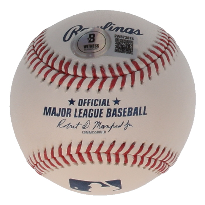 Rawlings Official Major League Baseball. Hand-signed by Chandler Simpson (Tampa Bay Rays). Please note, there are minor stains throughout the baseball.