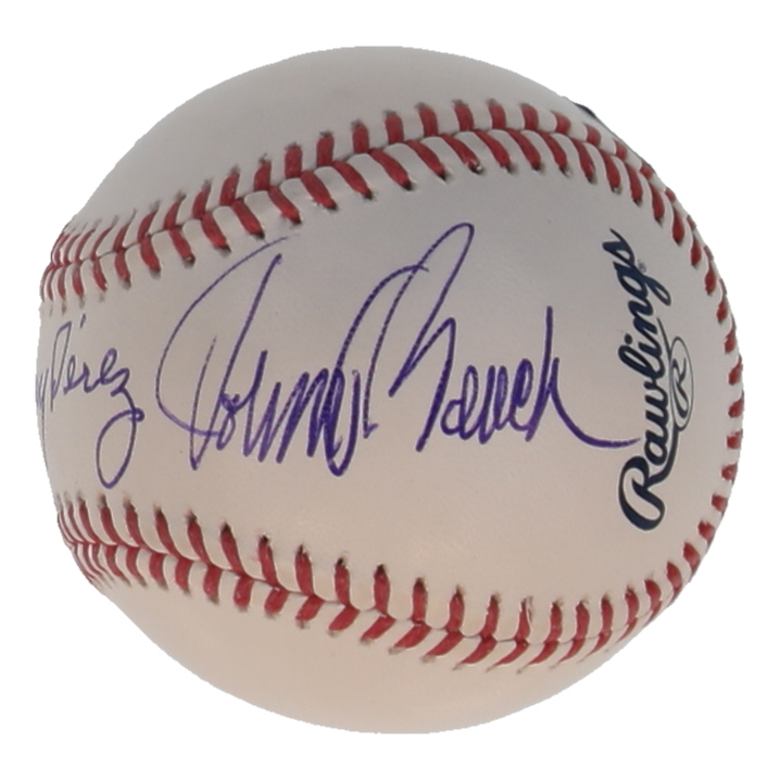 Rawlings Official Major League Baseball. Hand-signed by Johnny Bench (Cincinnati Reds, HOF) and Tony Perez (Cincinnati Reds, HOF). Please note, there are minor stains throughout the baseball.