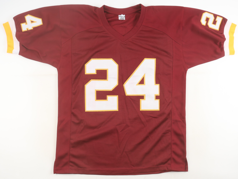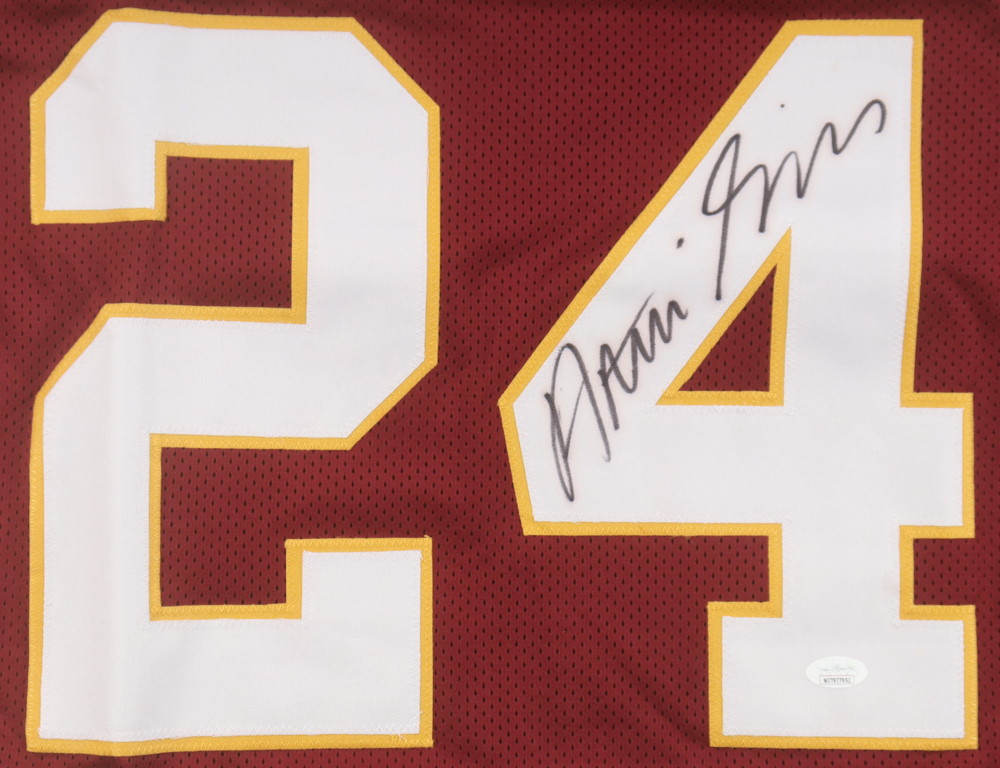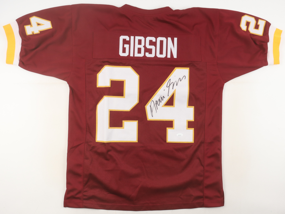 Custom jersey with everything sewn on, size XL. Hand-signed by Antonio Gibson. Please note, the signature has bled. See photos regarding the condition of the item.