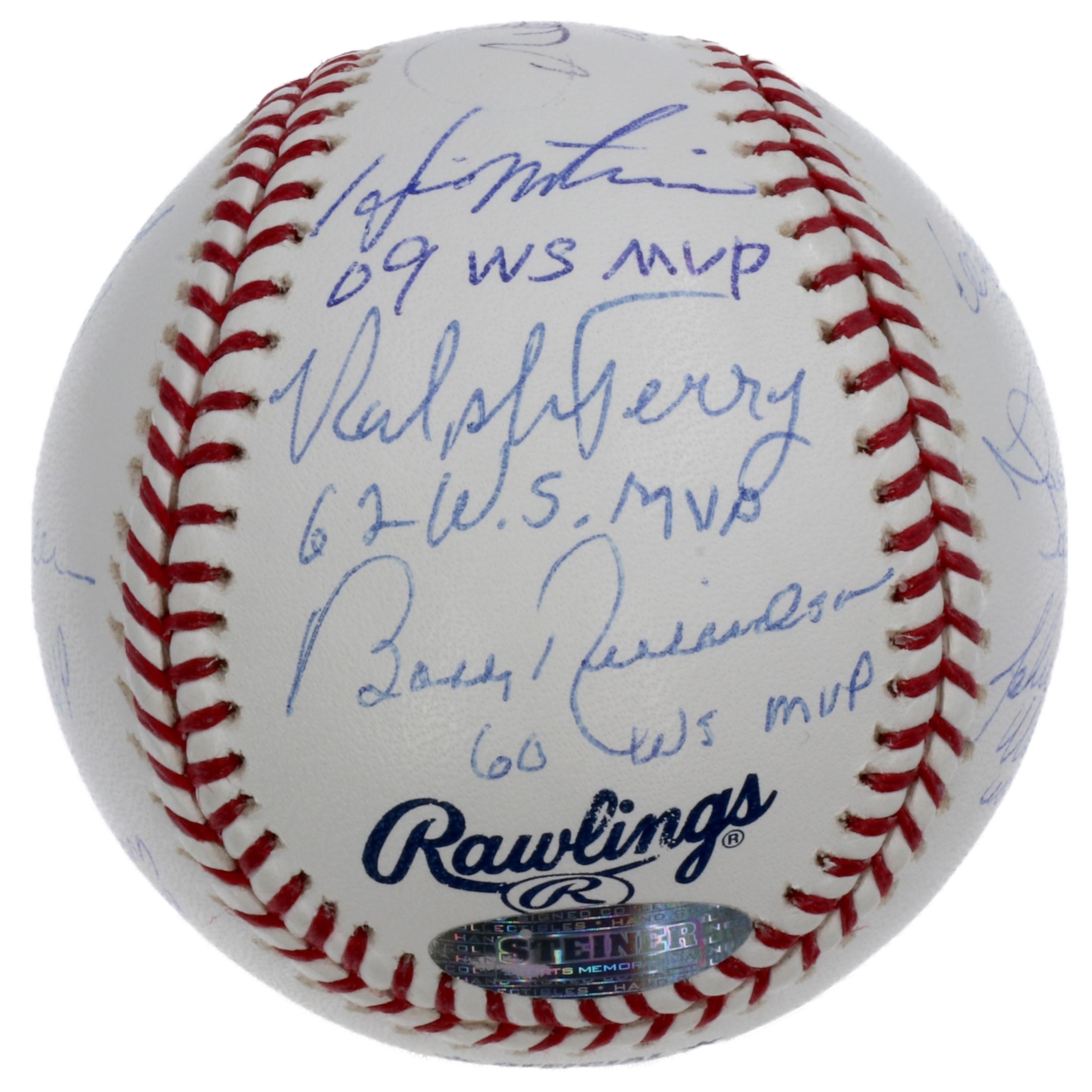 Yankees World Series MVP Winners OML Baseball Signed & Inscribed By (12) with Derek Jeter, Mariano Rivera, Whitey Ford (Steiner)