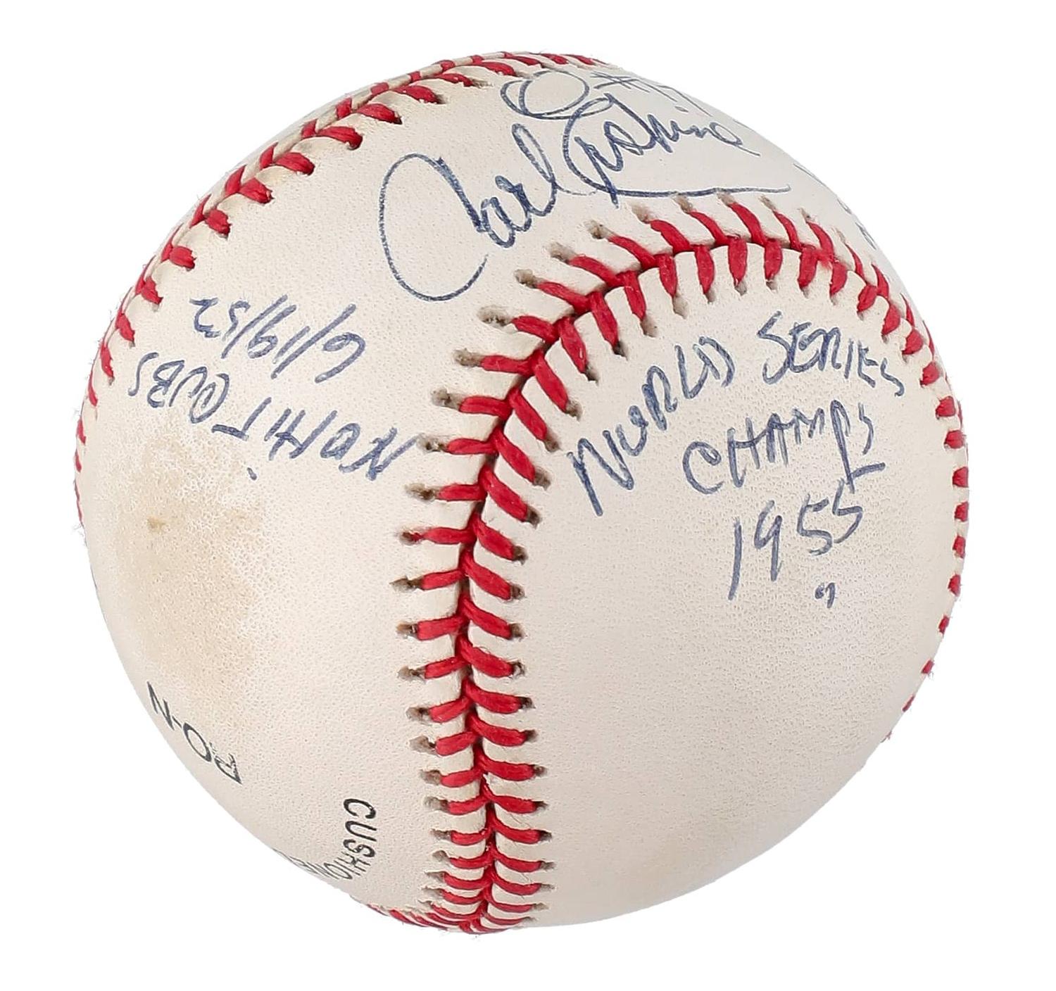 Carl Erskine Signed ONL Baseball with Career Stat Inscriptions (Beckett)