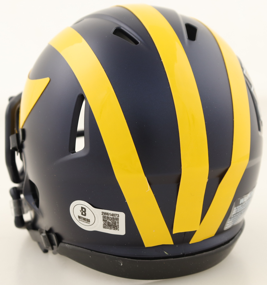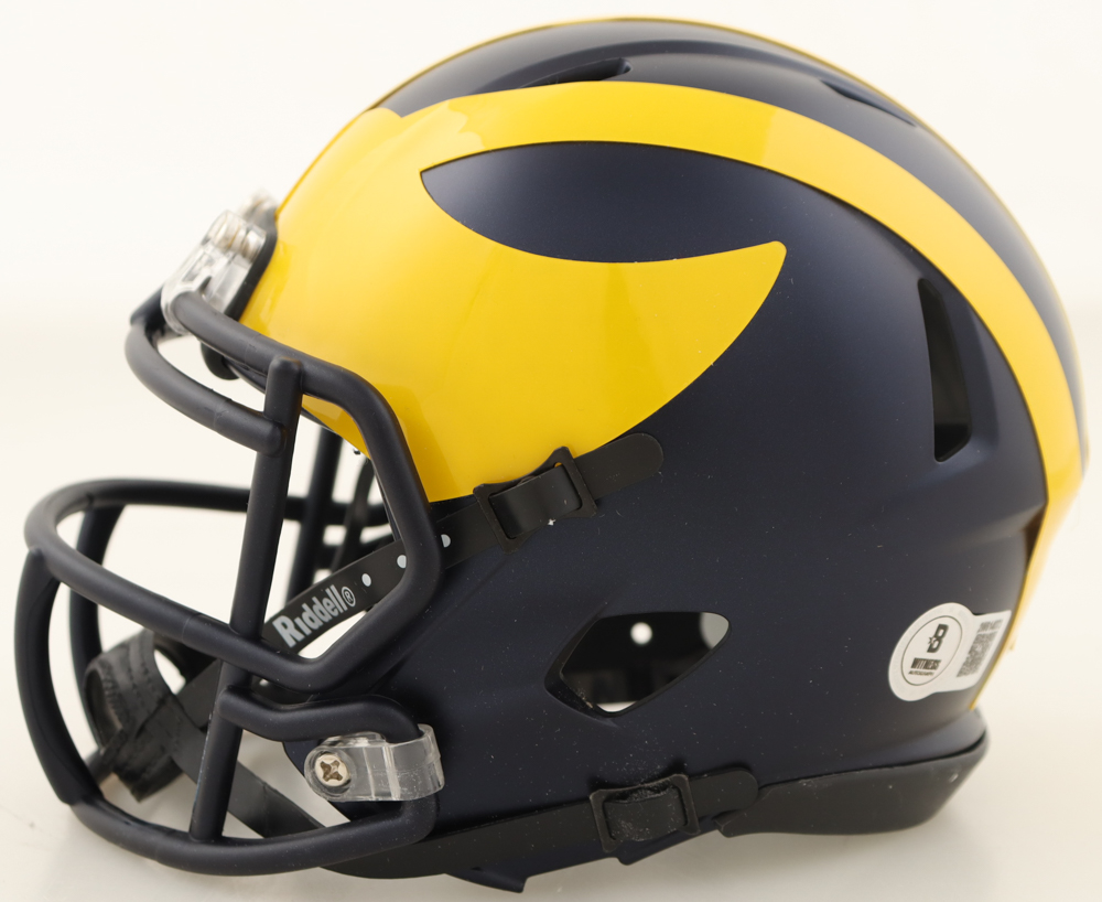 Riddell Michigan Wolverines 2023 National Champions speed mini helmet. Hand-signed by Donovan Edwards.