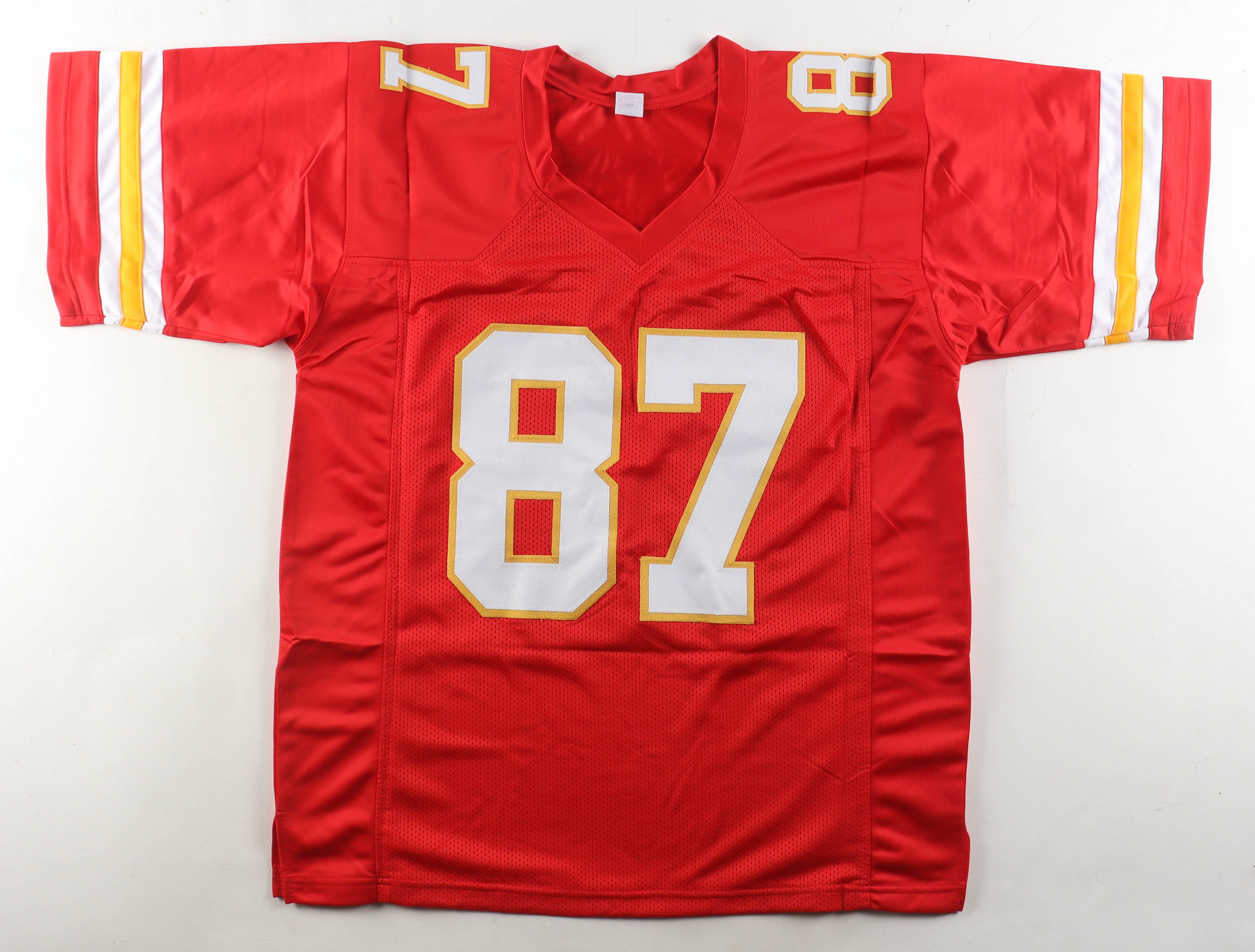 Custom jersey with everything sewn on, size XL. Hand-signed by Travis Kelce.