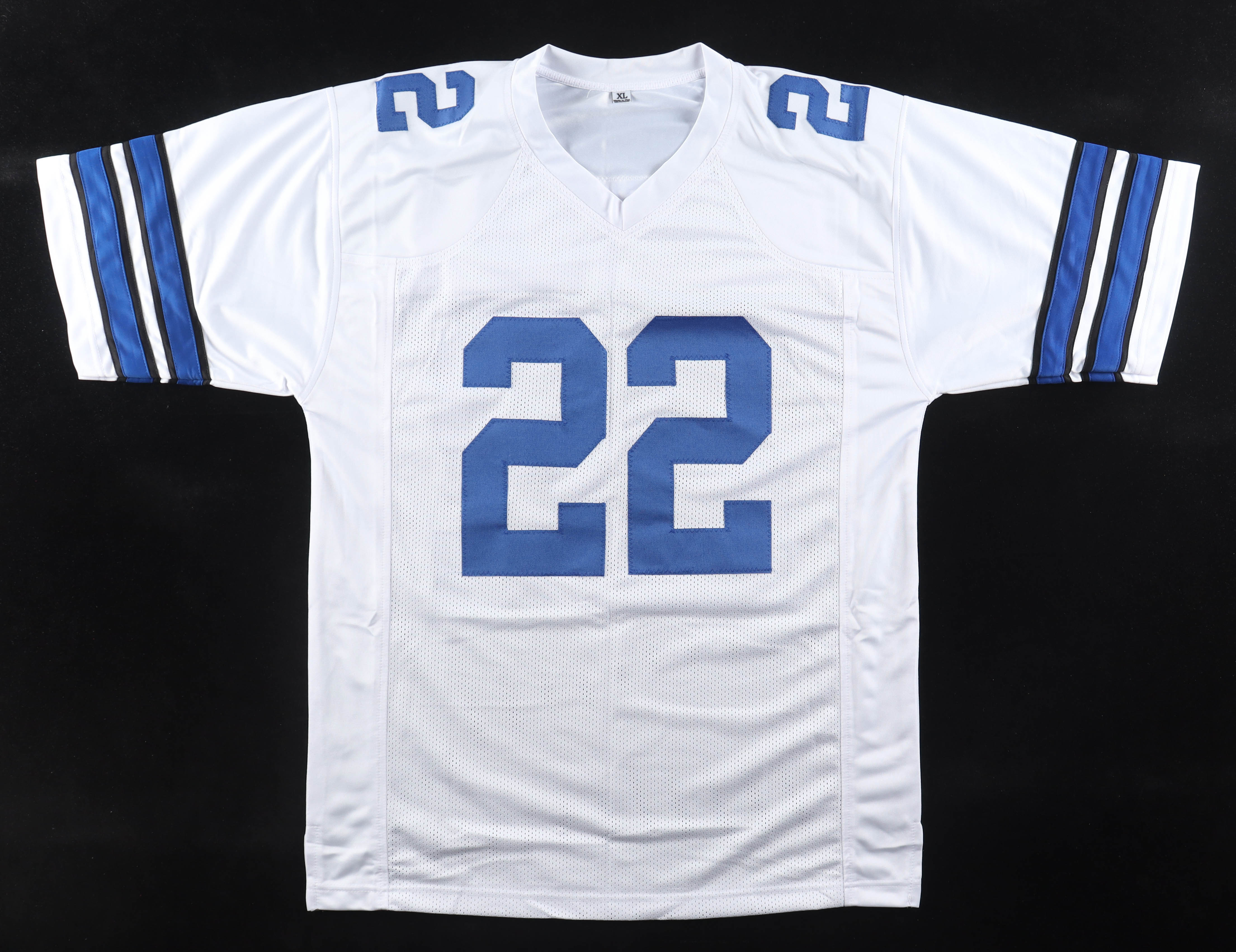 Custom jersey with everything sewn on, size XL. Hand-signed by Emmitt Smith (HOF).