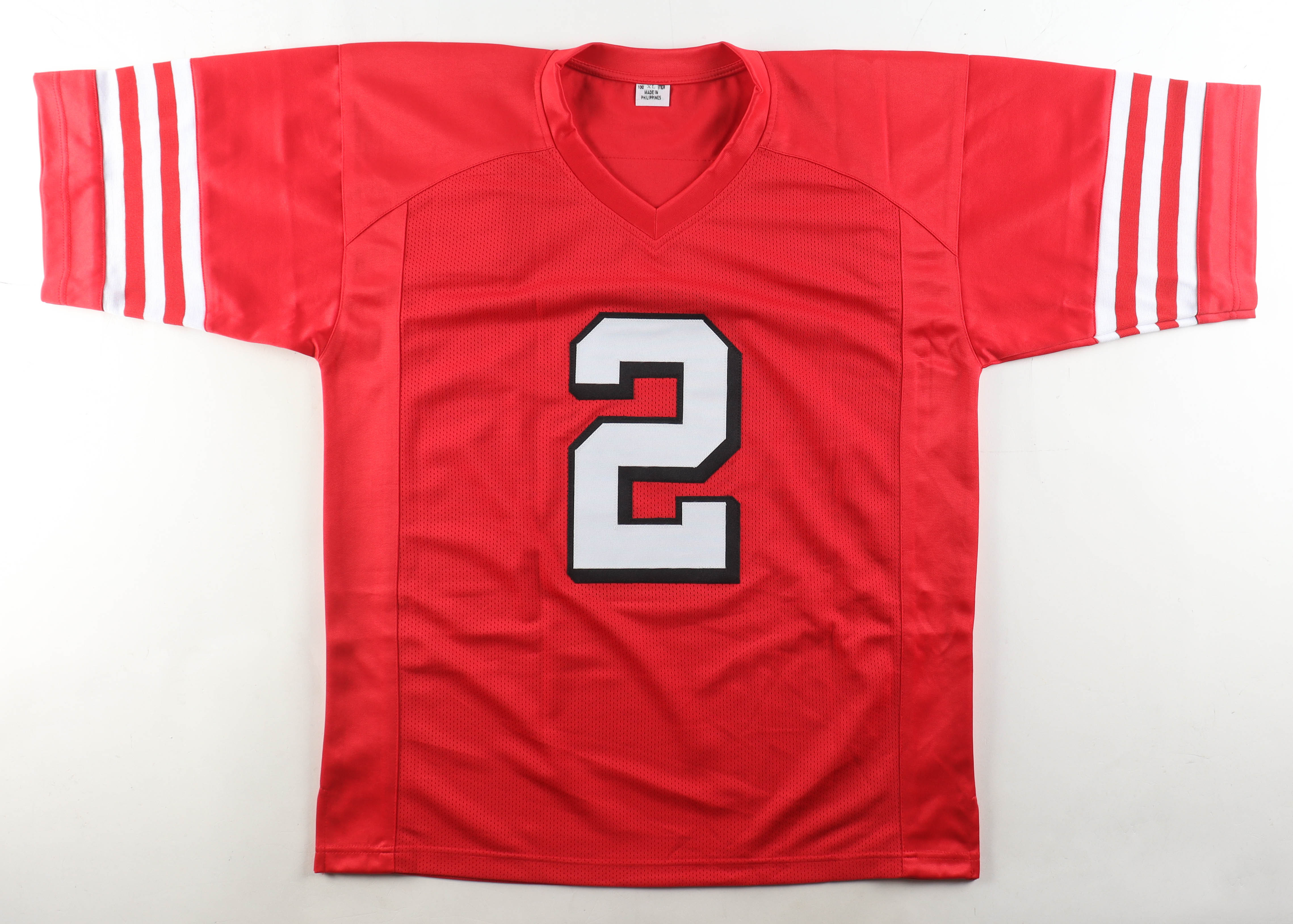 Custom jersey with everything sewn on, size XL. Hand-signed by Deommodore Lenoir.