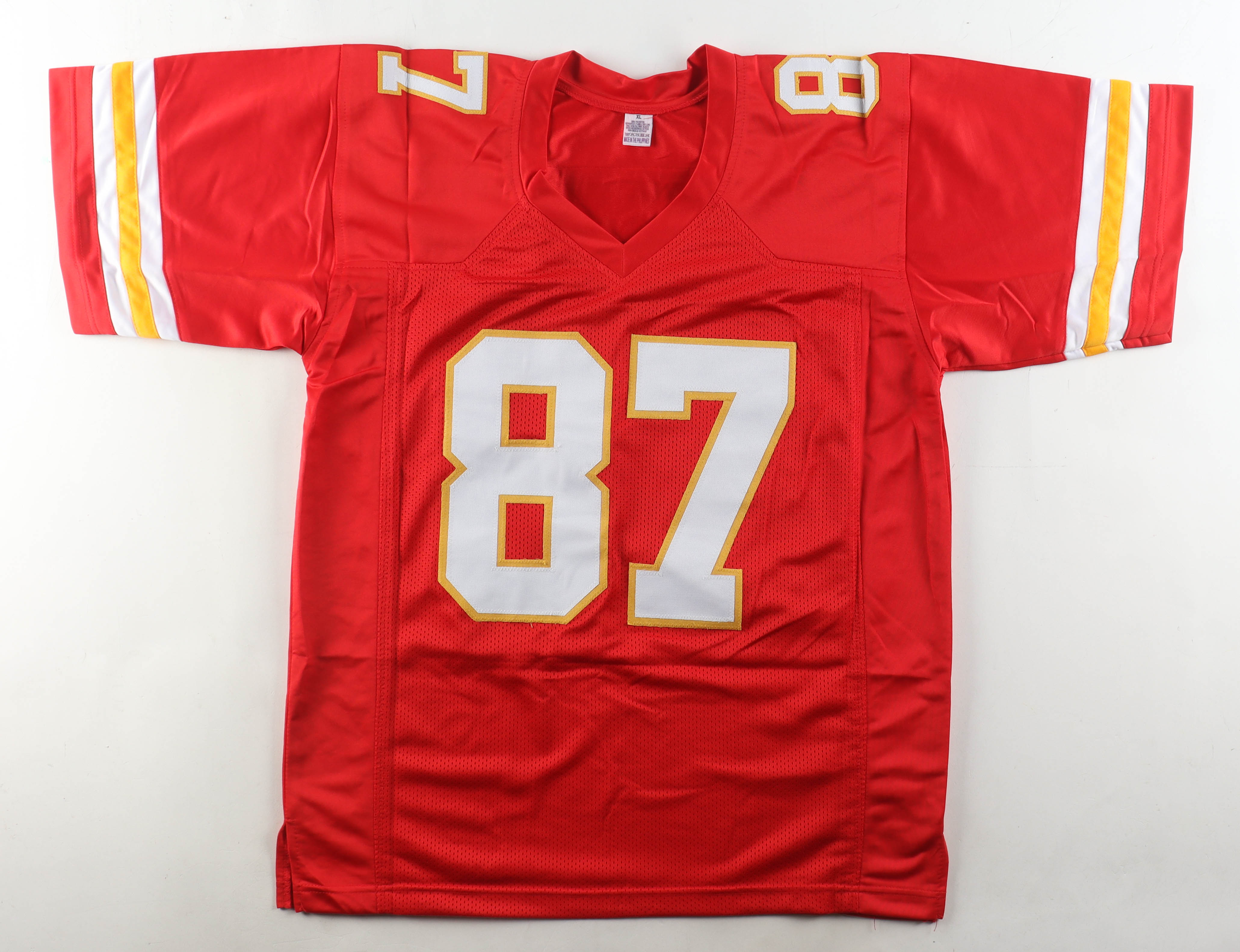 Custom jersey with everything sewn on, size XL. Hand-signed by Travis Kelce.