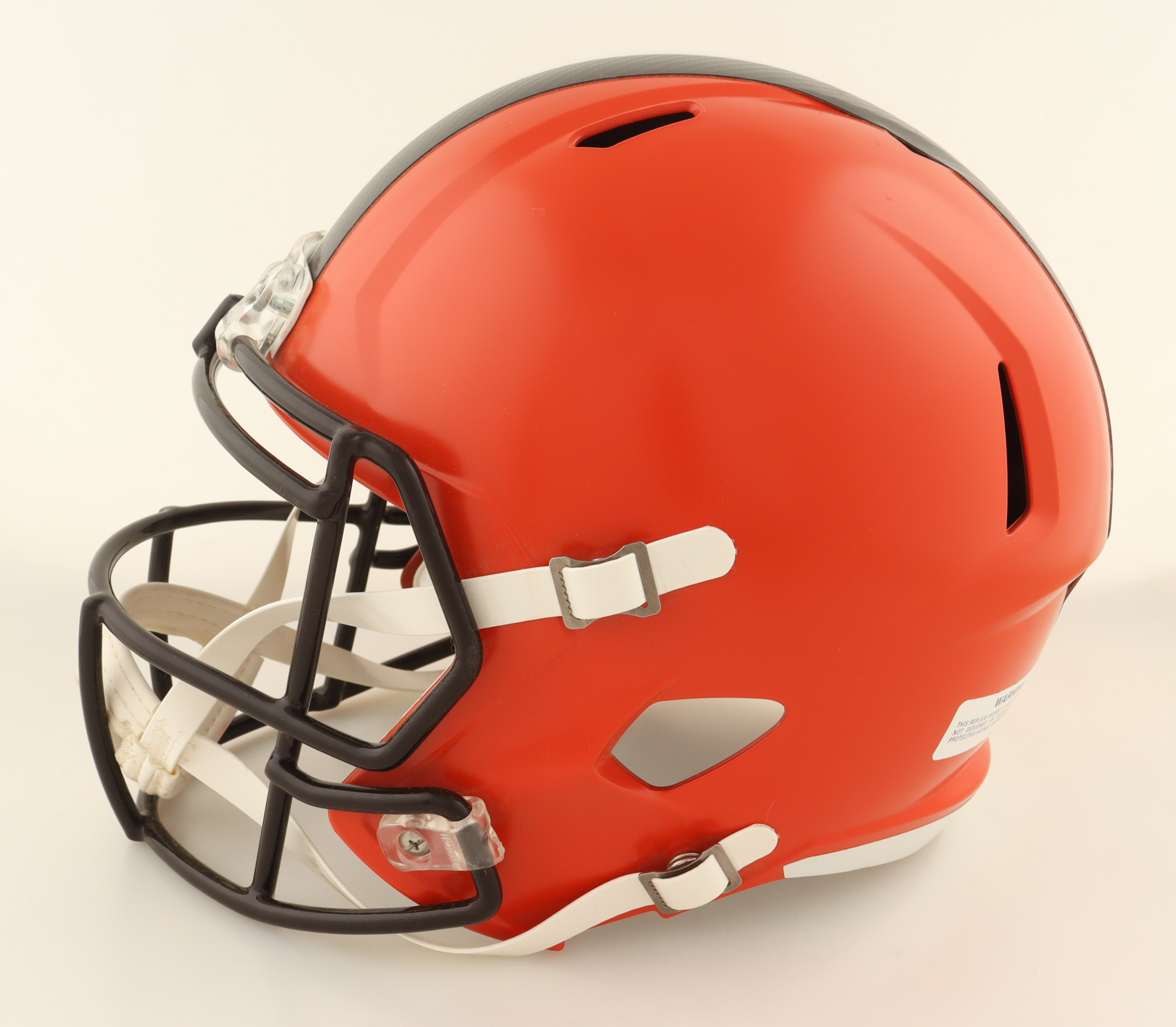 Riddell Cleveland Browns Full-Size Replica Speed Helmet has been hand-signed by Jabrill Peppers.