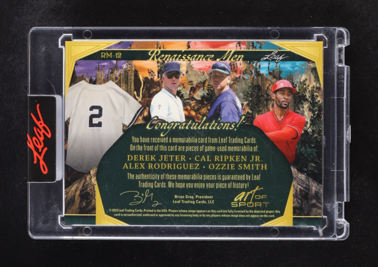 Derek Jeter / Cal Ripken Jr. / Alex Rodriguez / Ozzie Smith 2023 Leaf Art of Sport Renaissance Men Quad Relic #RM12 #32/35