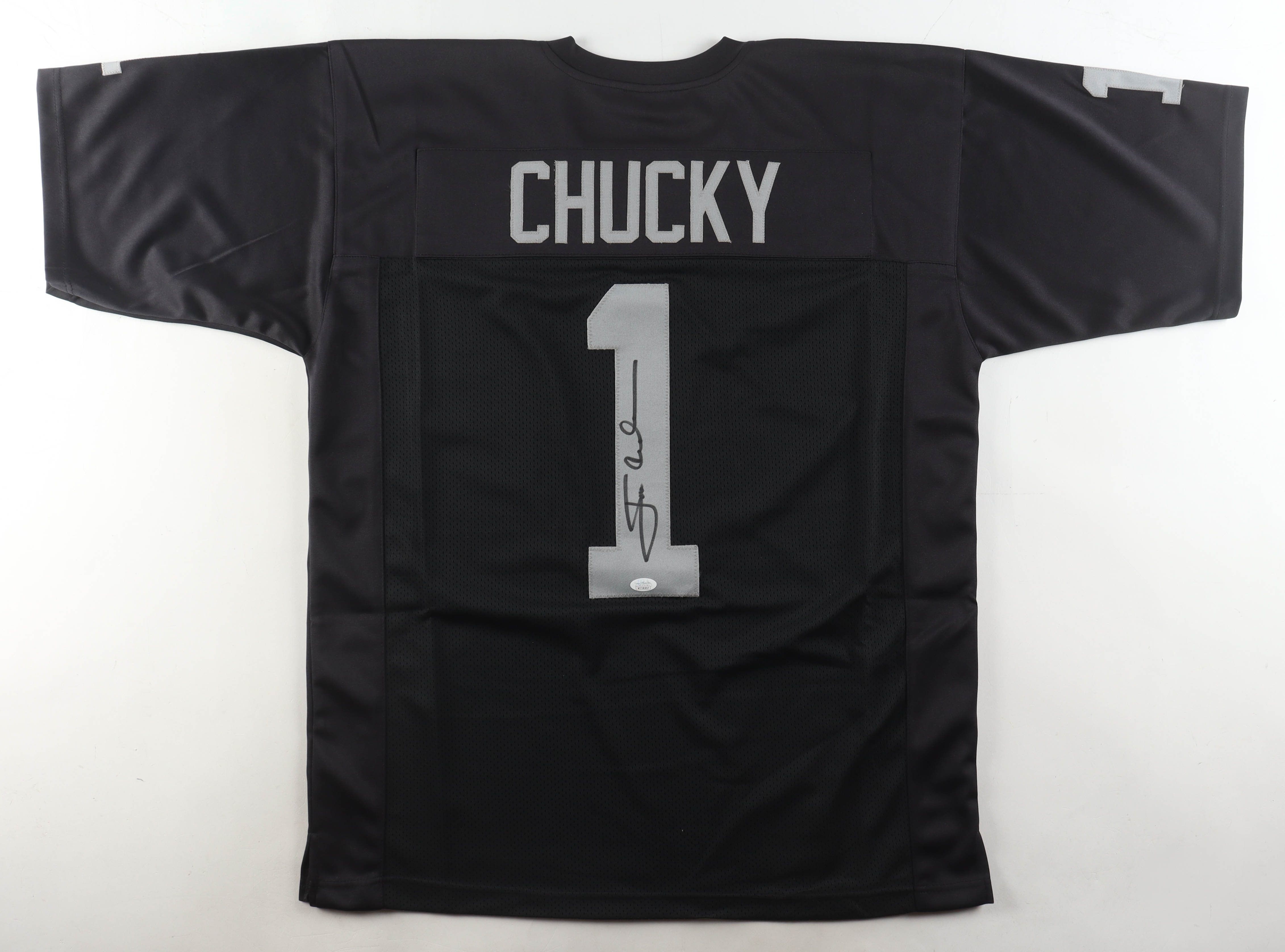 Custom jersey with everything sewn on, size XL. Hand-signed by Jon Gruden.