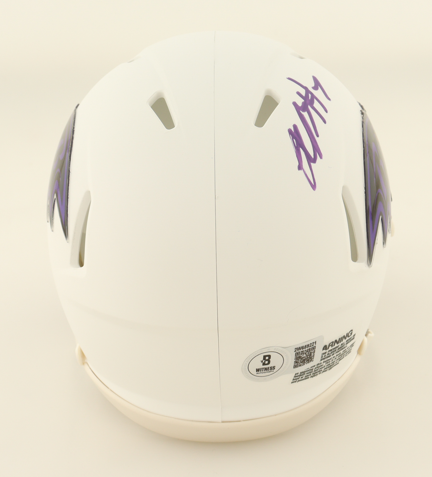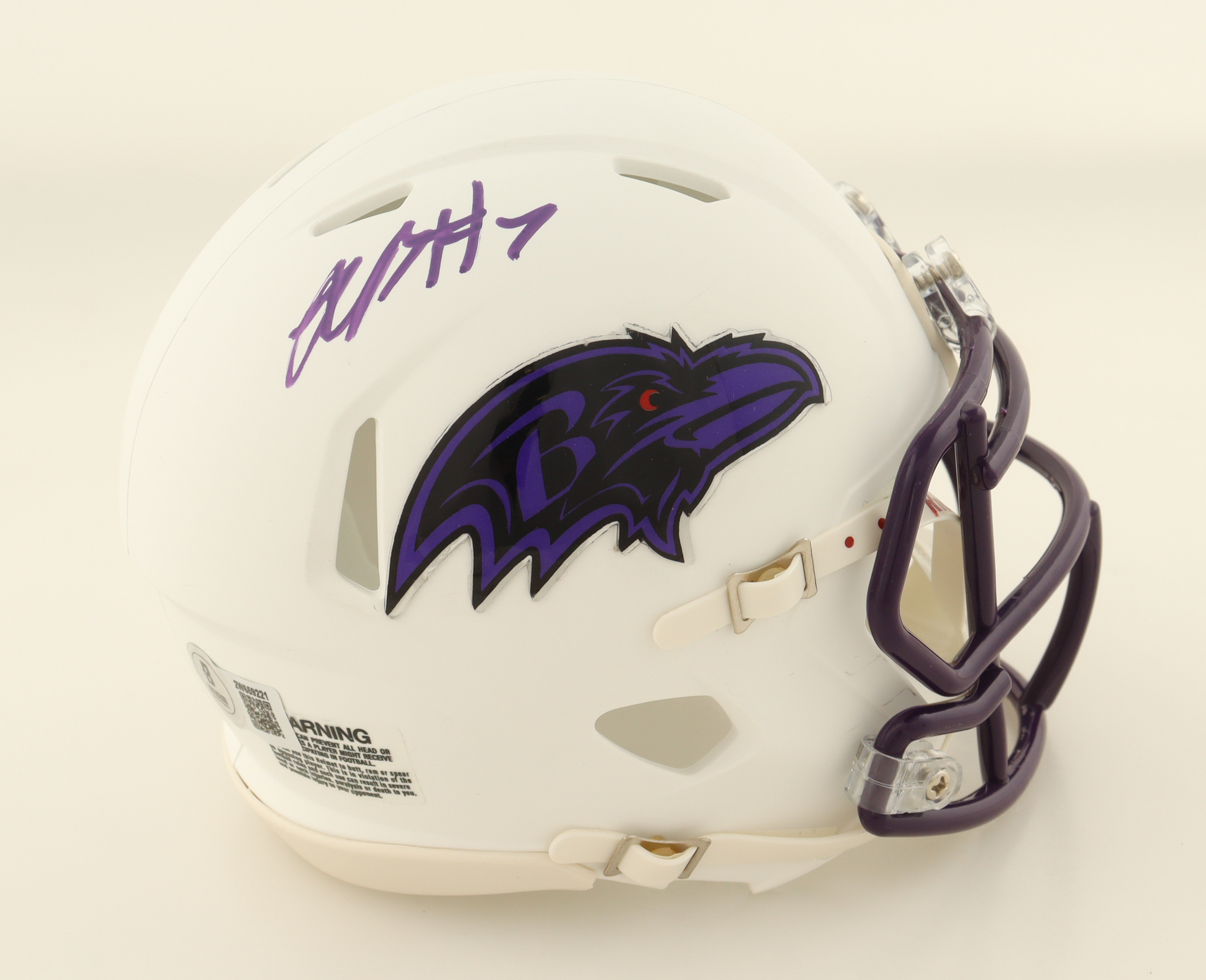 Riddell Baltimore Ravens speed mini helmet has been hand-signed by Rashod Bateman.