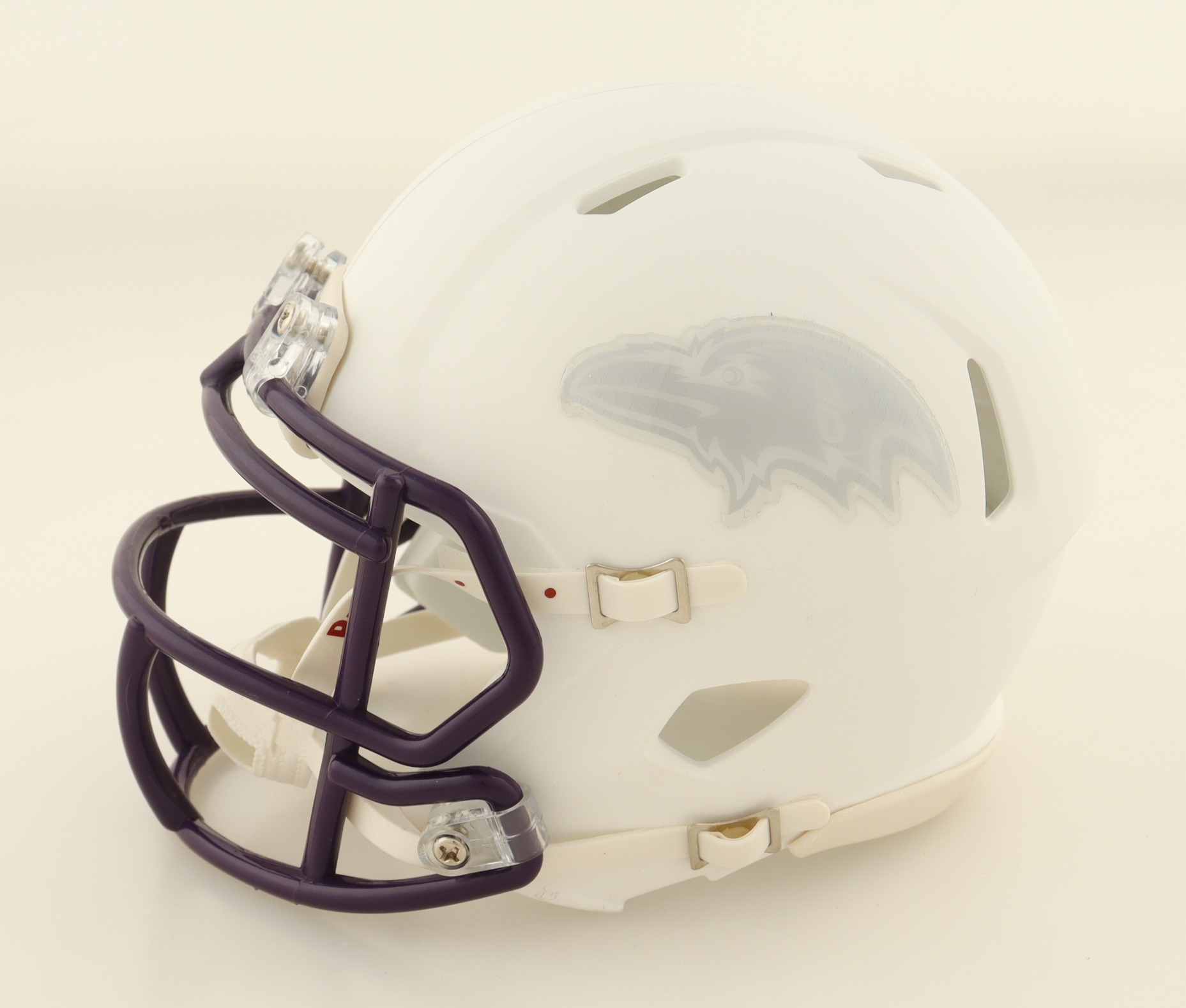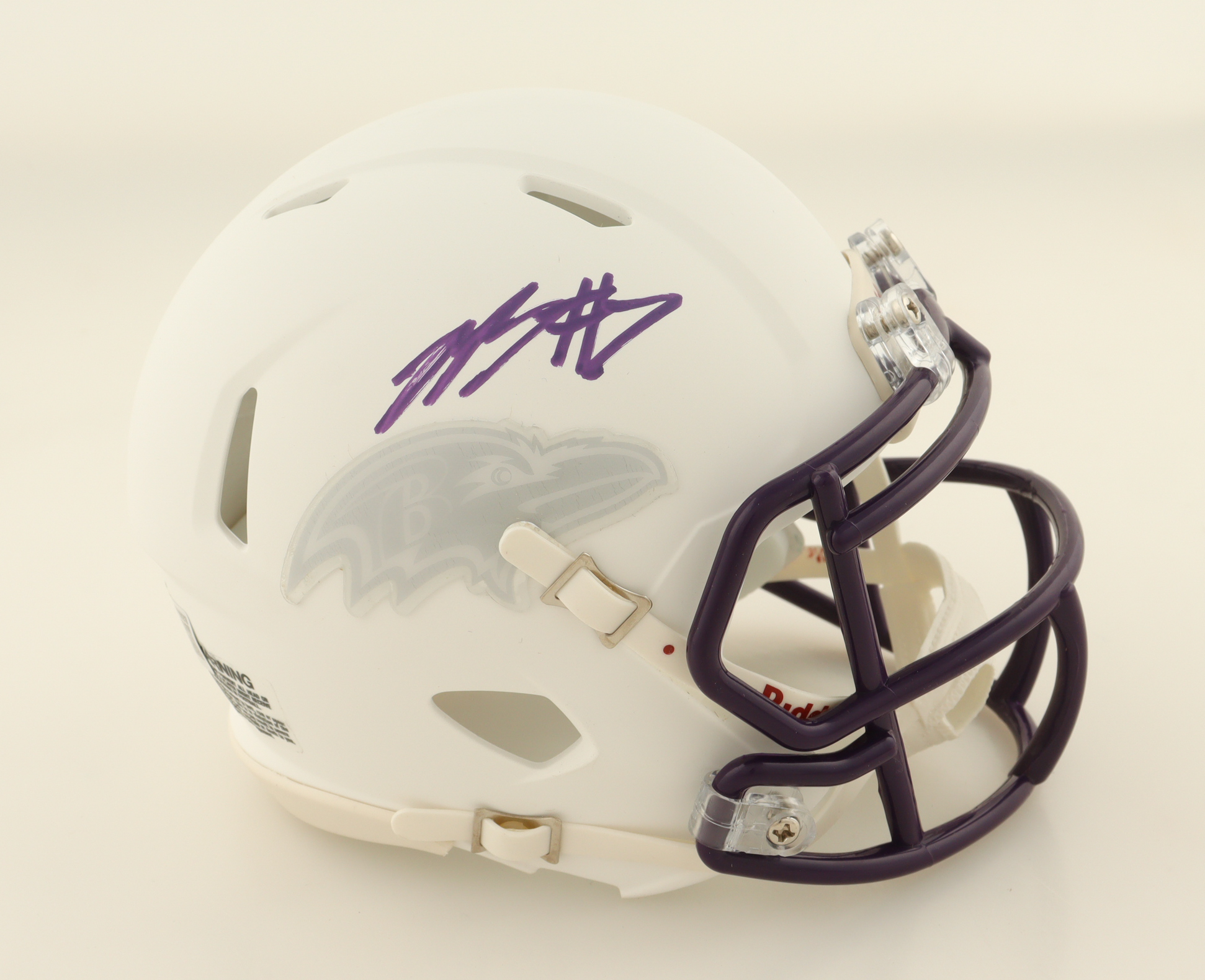 Riddell Baltimore Ravens speed mini helmet has been hand-signed by Rashod Bateman.
