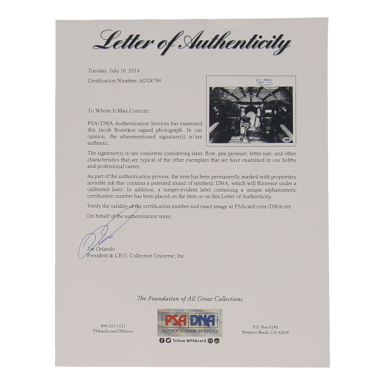 Jacob Bontekoe Signed 8x10 Photo WWII B-29 "Top Secret" Pilot (PSA)