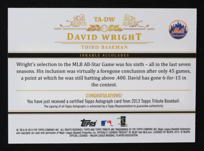 David Wright 2013 Topps Tribute Autographs #TA-DW #11/15