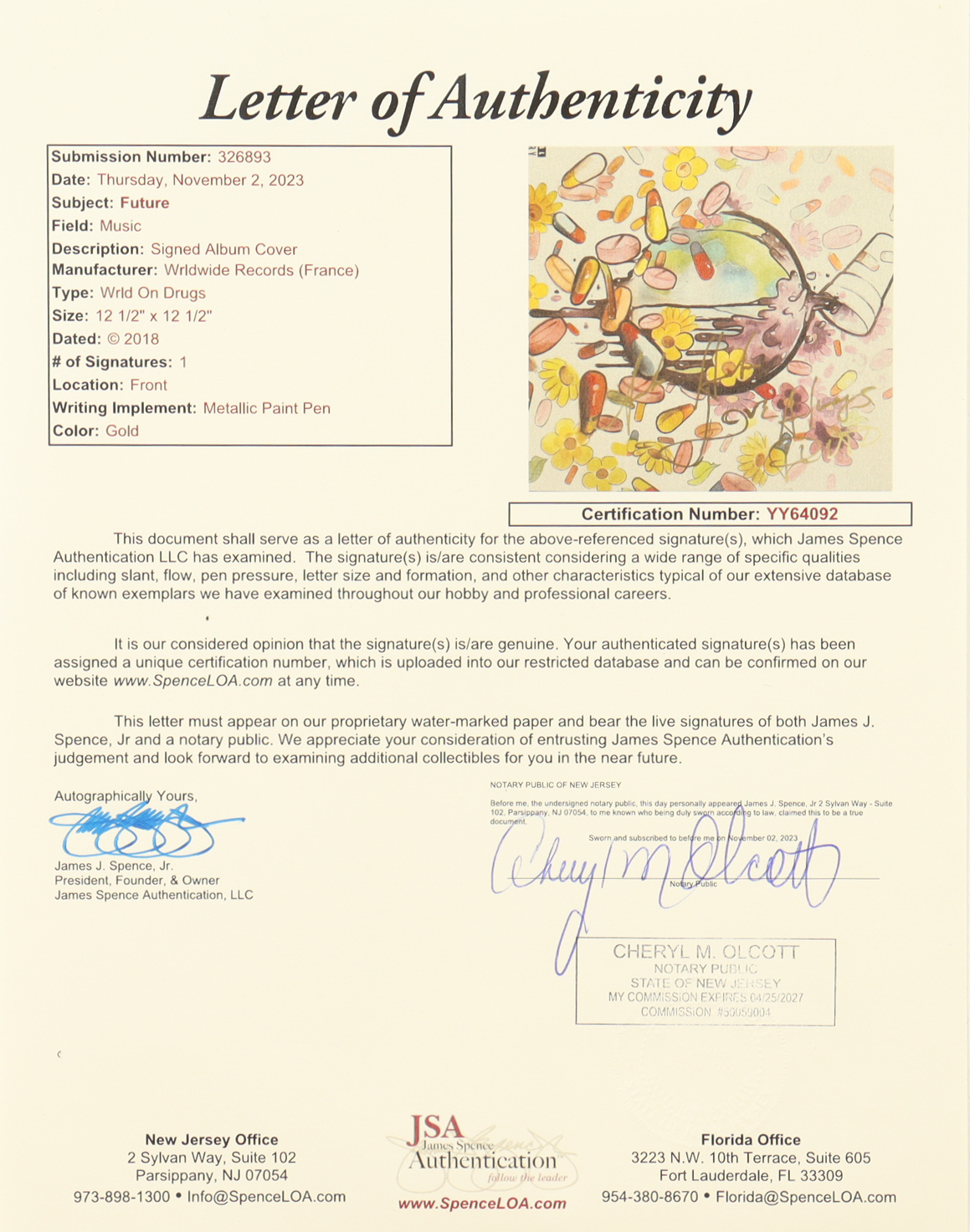 Future Signed "WRLD On Drugs" Vinyl Album Jacket with Record Inscribed "Love Always"(JSA)