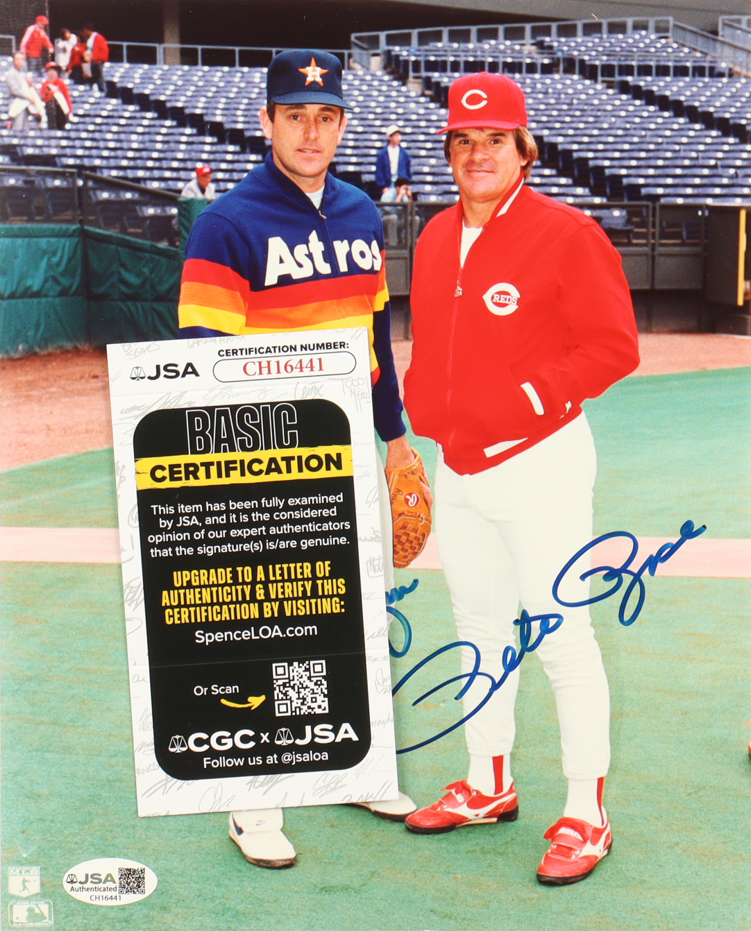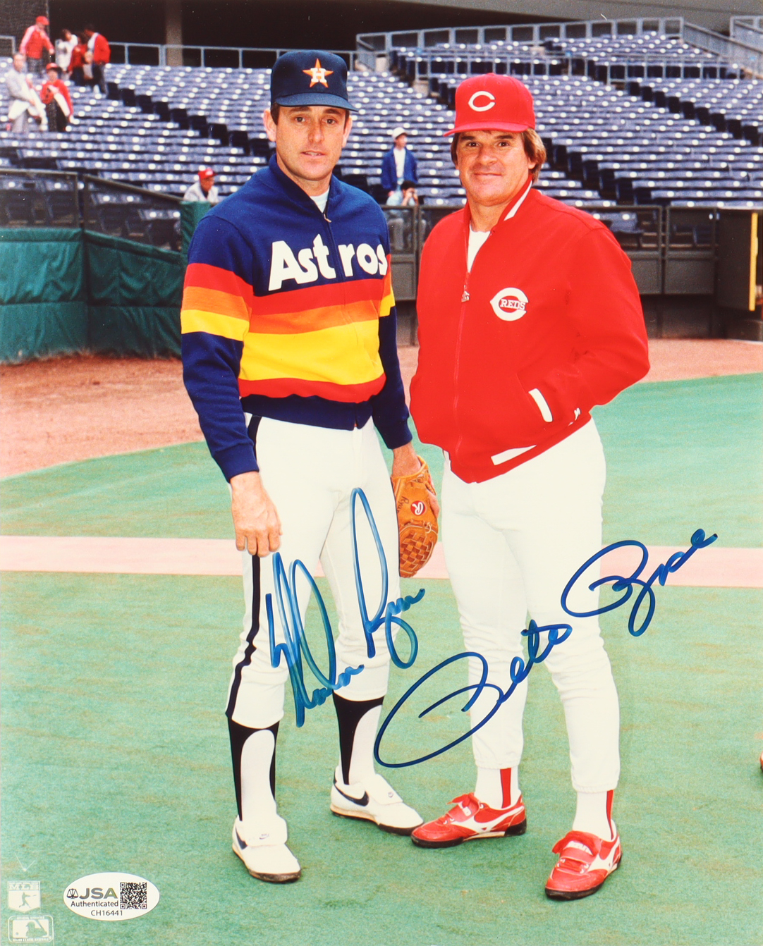 Nolan Ryan & Pete Rose Signed Astros / Reds Photo Plaque Display (JSA)