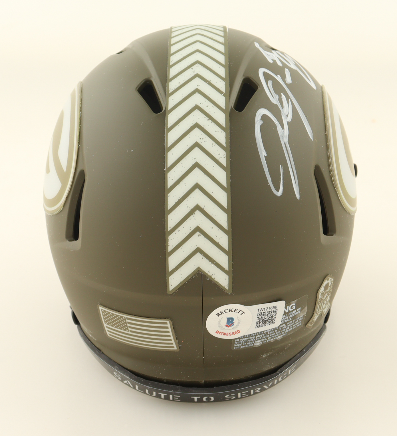 Josh Jacobs Signed Packers Salute To Service Alternate Speed Mini Helmet (Beckett)