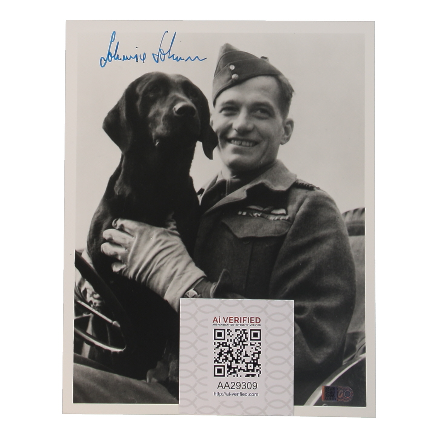 Up for auction is a hand-signed 8x10 photograph autographed by **Johnnie Johnson**, a distinguished WWII ace and leading Canadian pilot with the **Royal Air Force**. Johnson, renowned for his remarkable achievements, scored an impressive **34 aerial victories** during his service, including his participation in the pivotal D-Day operations.