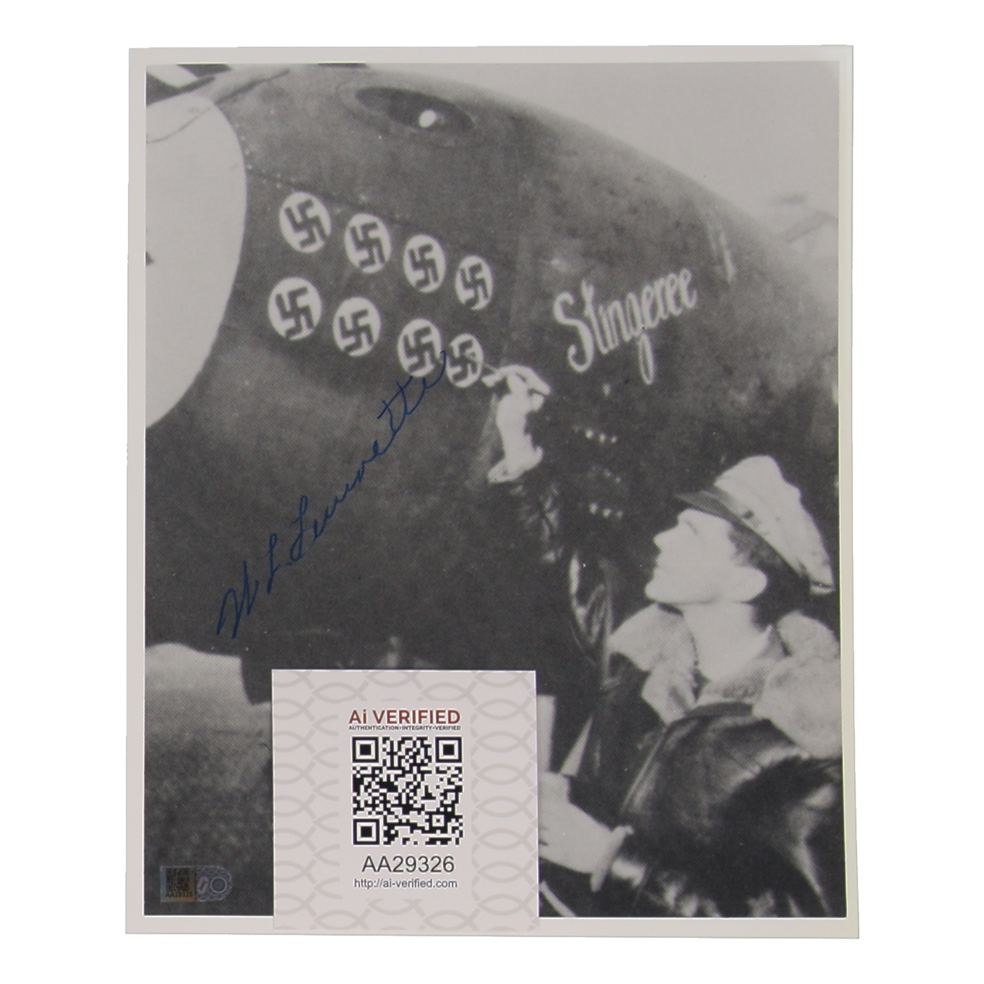 This signed photograph is a rare and valuable artifact from WWII aviation history, capturing the legacy of **William Leverette**. With its **AI-Verified Certificate of Authenticity** and matching authenticity sticker, it stands as a testament to his impressive career and contributions during World War II.