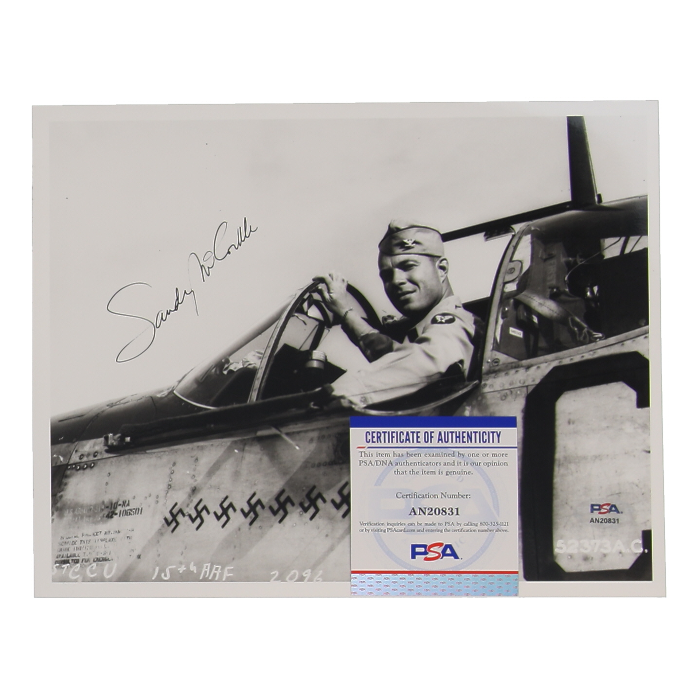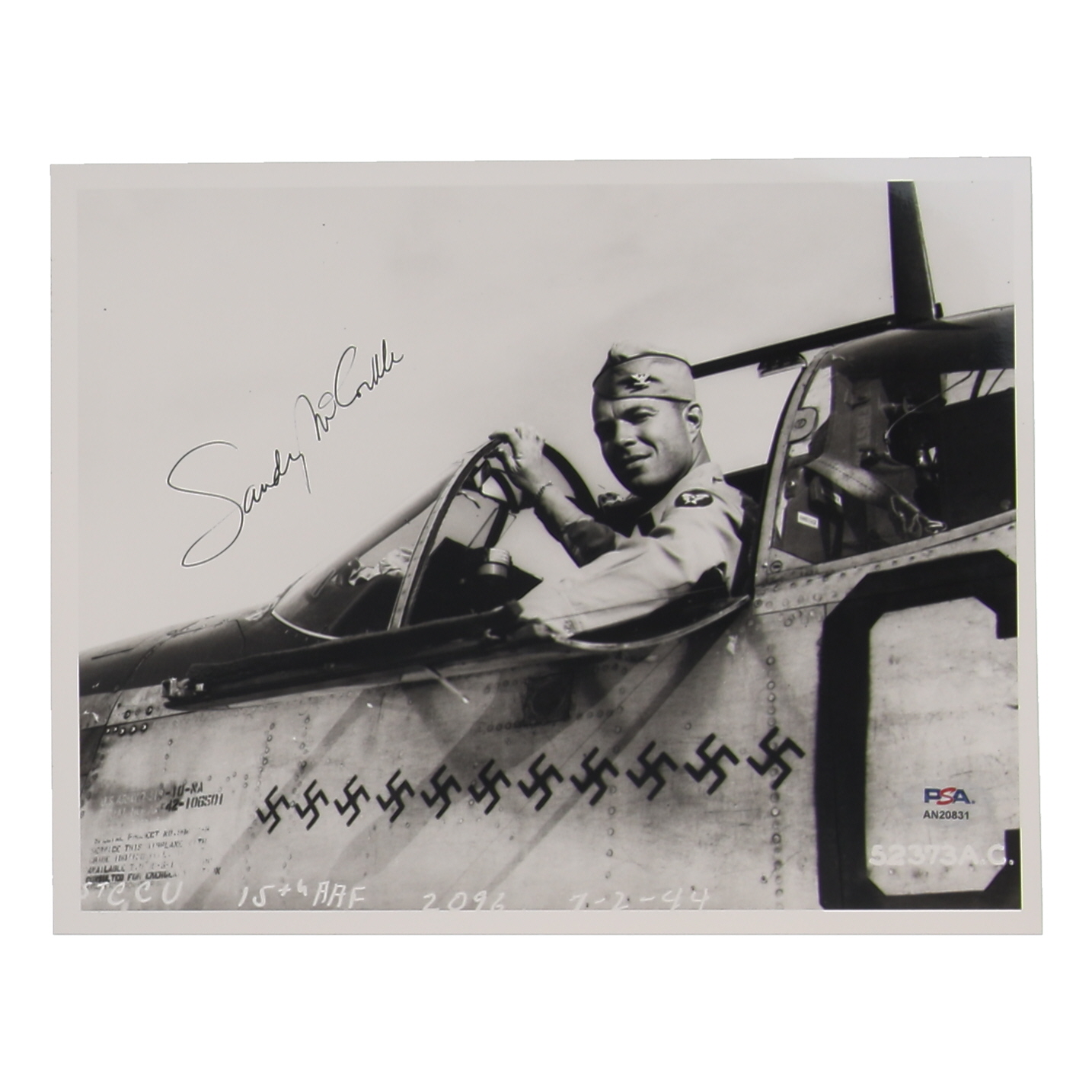 Don't miss your chance to add this rare gem to your collection. Bid now and make this exceptional signed 8x10 photograph of WWII ace Sandy McCorkle from the 31st Fighter Group the centerpiece of your collection. With PSA/DNA authentication, bid with absolute confidence, knowing that authenticity is guaranteed. Seize this opportunity to honor the legacy of a true American hero. Place your bid today and let this extraordinary piece of WWII history become a cherished part of your collection!
