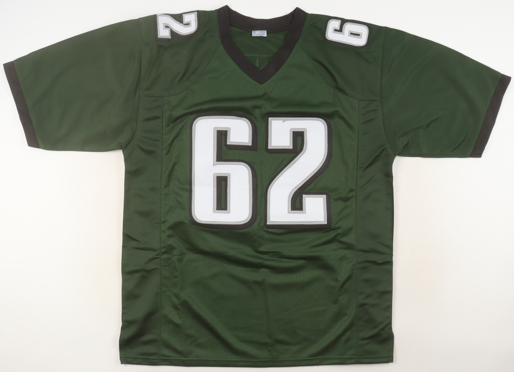 Custom jersey with everything sewn on, size XL. Hand-signed by Jason Kelce.